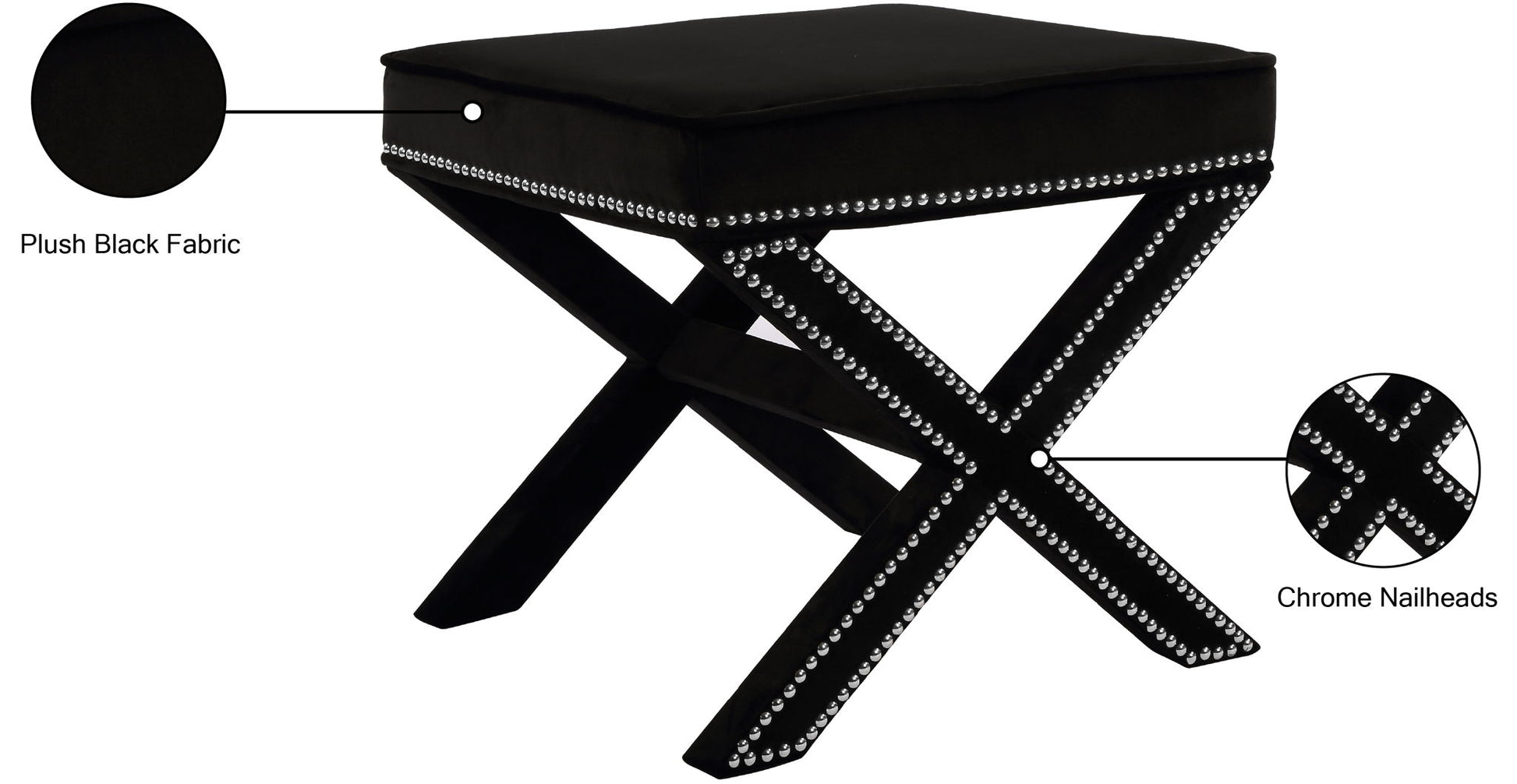 You'll be sitting pretty on this Nixon velvet ottoman/bench. This beautiful piece has a stunning look with its velvet upholstery and nail head trim that gives your room a decidedly contemporary vibe. The X-shaped legs are sturdy and stout, making it a beautifully durable addition to your space. The ottoman's large top accommodates your feet while you relax and unwind with a good book, or pull it out on game night for an extra seat.