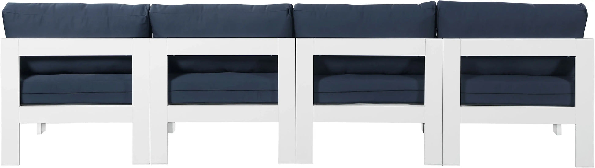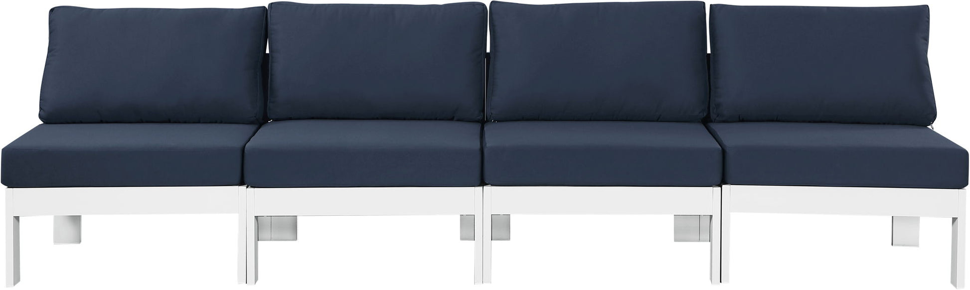 Nizuc - Outdoor Patio 4 Piece Armless Modular Sofa With White Frame - Navy