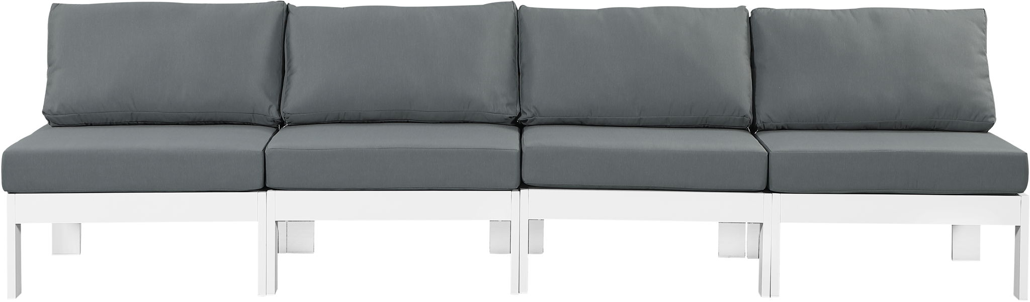 Nizuc - Outdoor Patio 4 Piece Armless Modular Sofa With White Frame - Gray