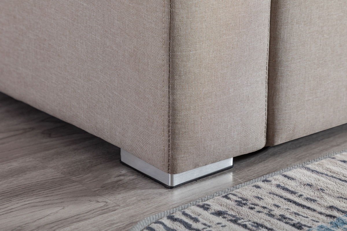 - The Nolan Collection has all the important features you want comfort, style, quality! This beautiful modular sofa sectional with a storage ottoman will fit into any living room and impress your guests! The sectional has the short legs attached but can be changed to the taller legs that are included for a higher seating. The comfortable linen fabric with five matching accent pillows will light up your living room with the trendiest of looks. Perfect for small space living for your apartment, condo, loft, office, and bedroom. You can welcome multiple guests where everyone will be able to enjoy entertainment together.