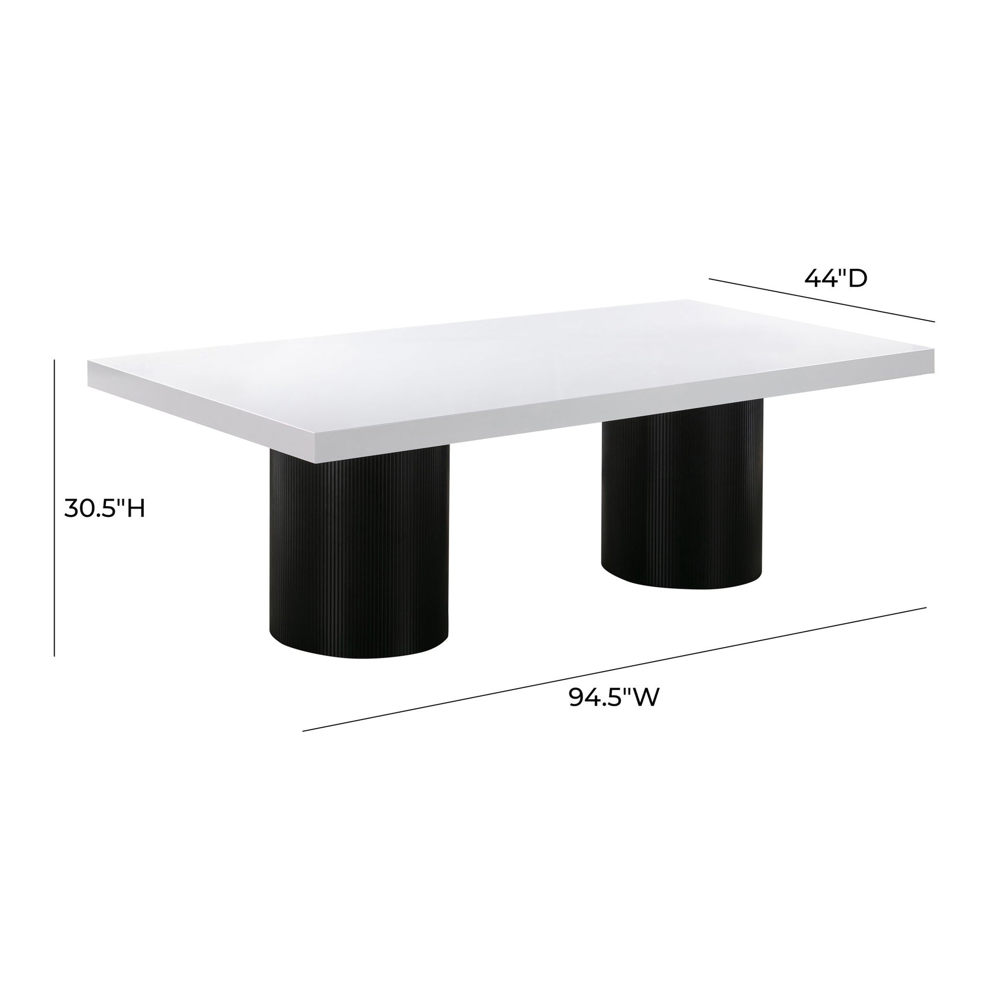 The clean-cut simplicity of the Nova Table with its statement conical legs, makes it the perfect bold yet versatile piece to elevate your dining experience. Featuring a glossy white lacquer top contrasted with 2 beautifully crafted black pedestal legs, this two-toned minimalistic table will undeniably be an accessory to any dining room.