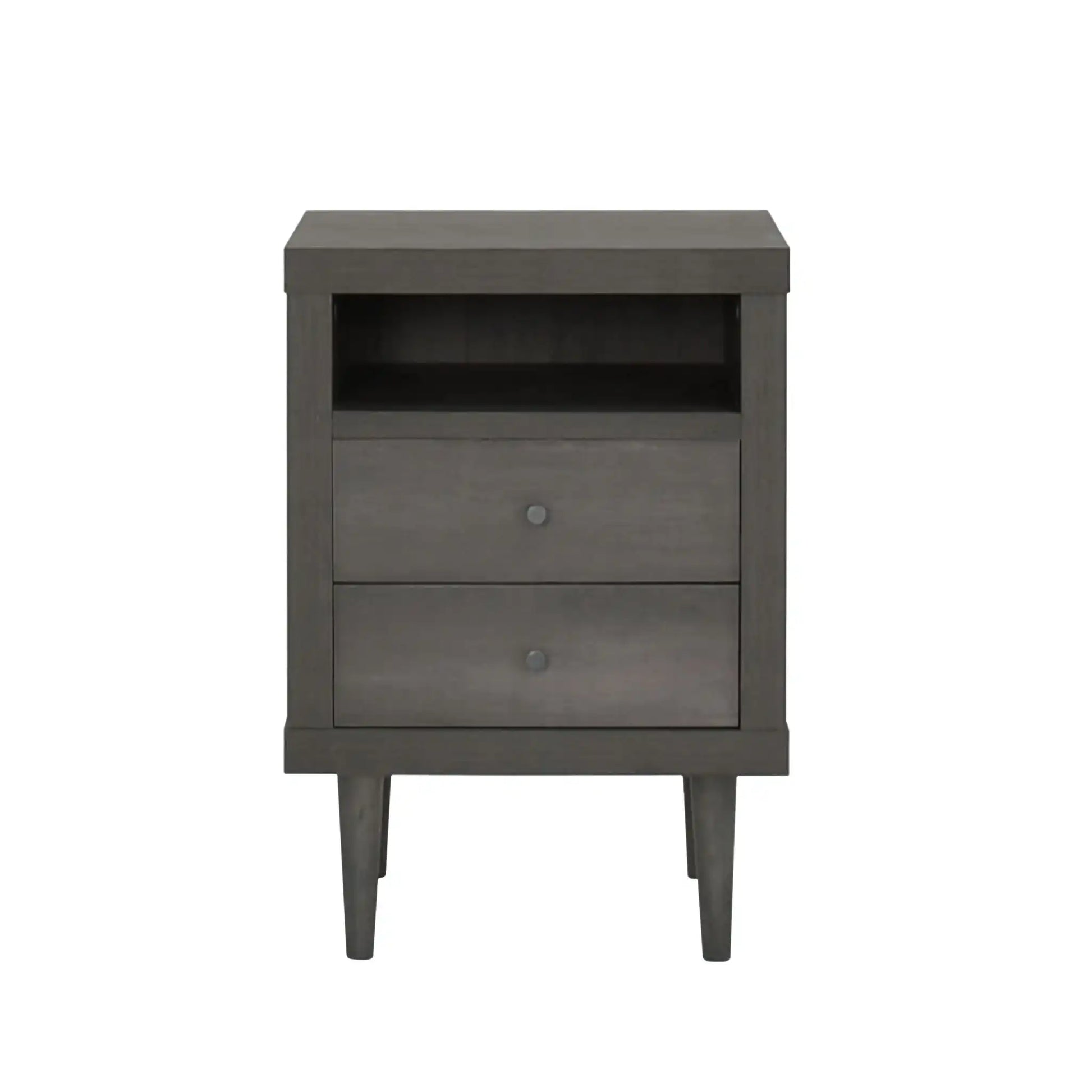 Nystrom - Mid Century Modern 2 Drawer Nightstand - Gray