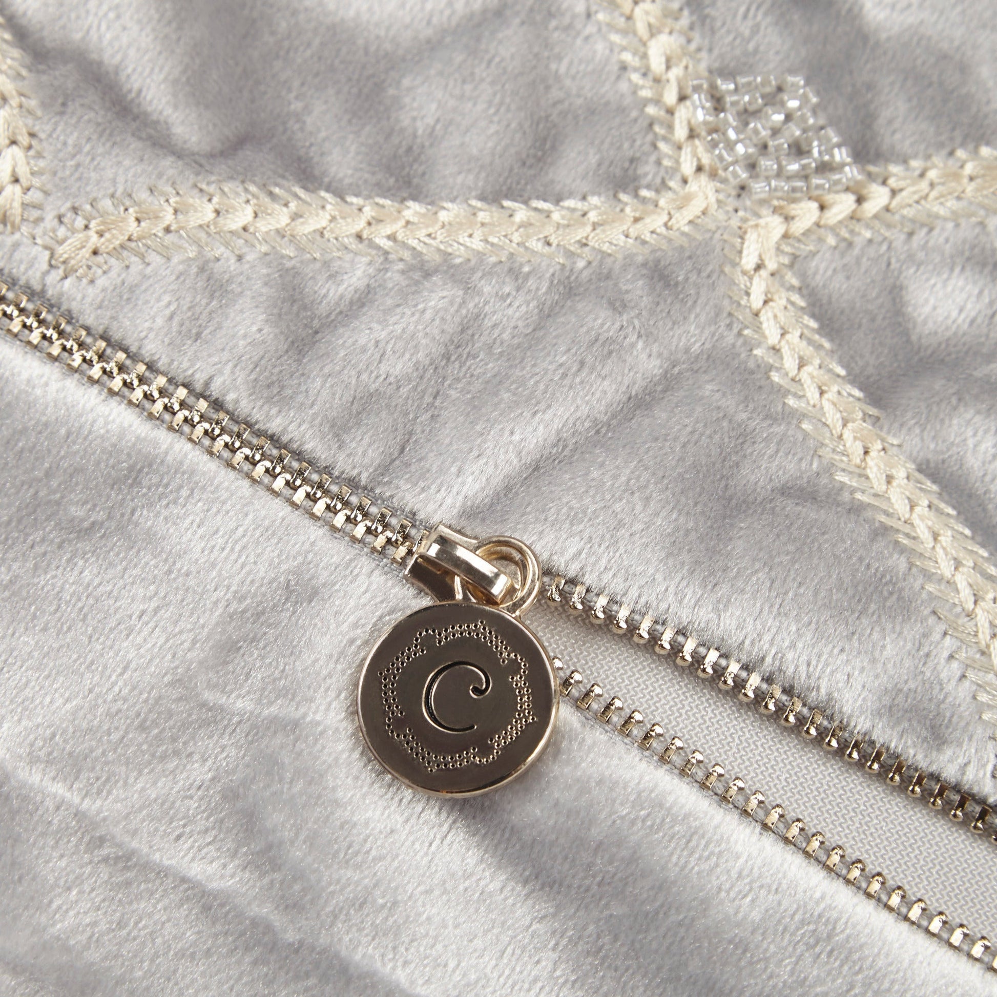 - 100% polyester velvet cover with intricate net patterning and hand-beaded embellishments