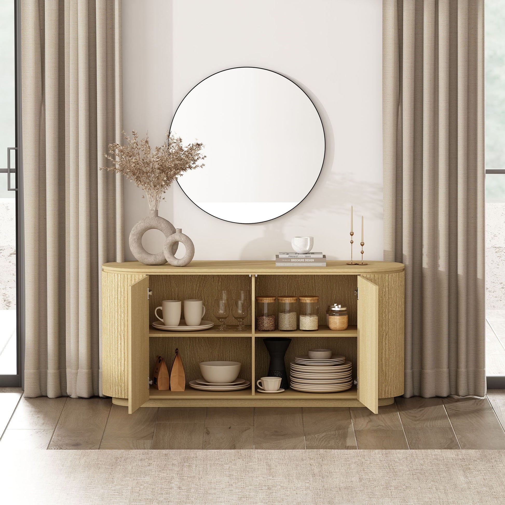 Olivia - Sideboard With 4 Adjustable Shelves With Handle Free Doors And Rounded Edges - Oak