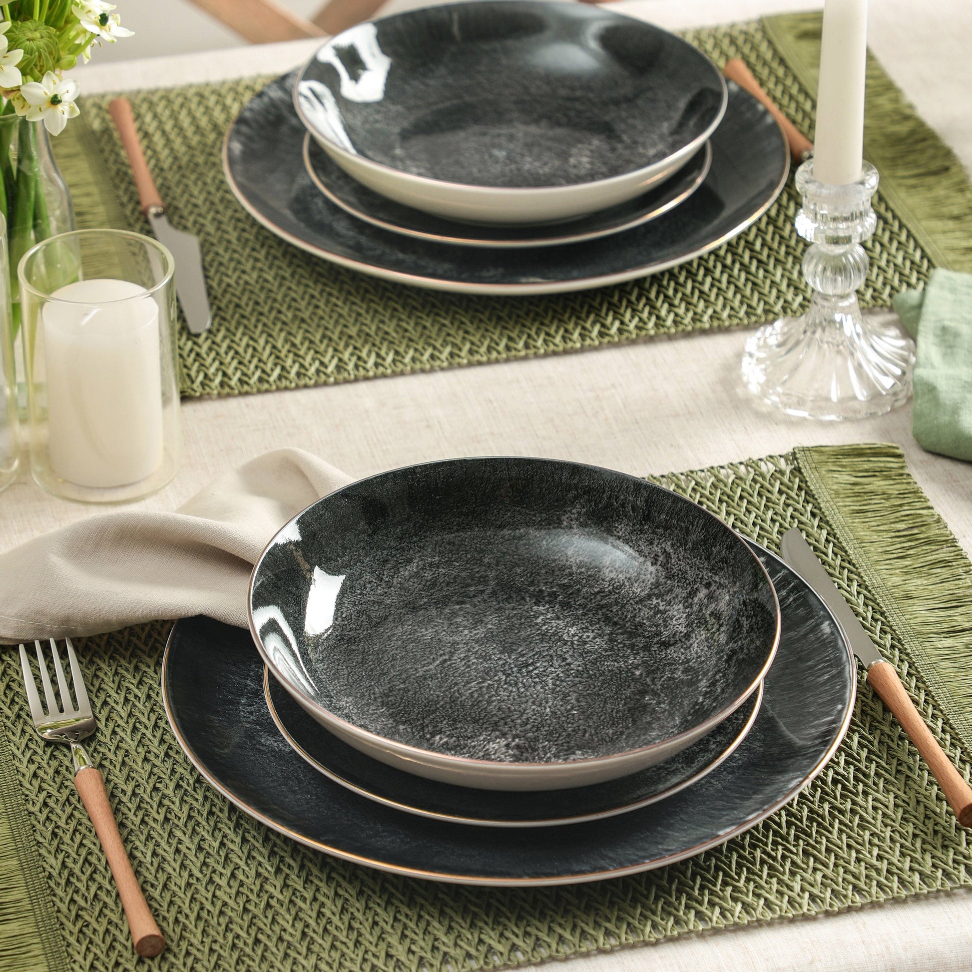 Onyx Porcelain Dinnerware Set - Black and Gold