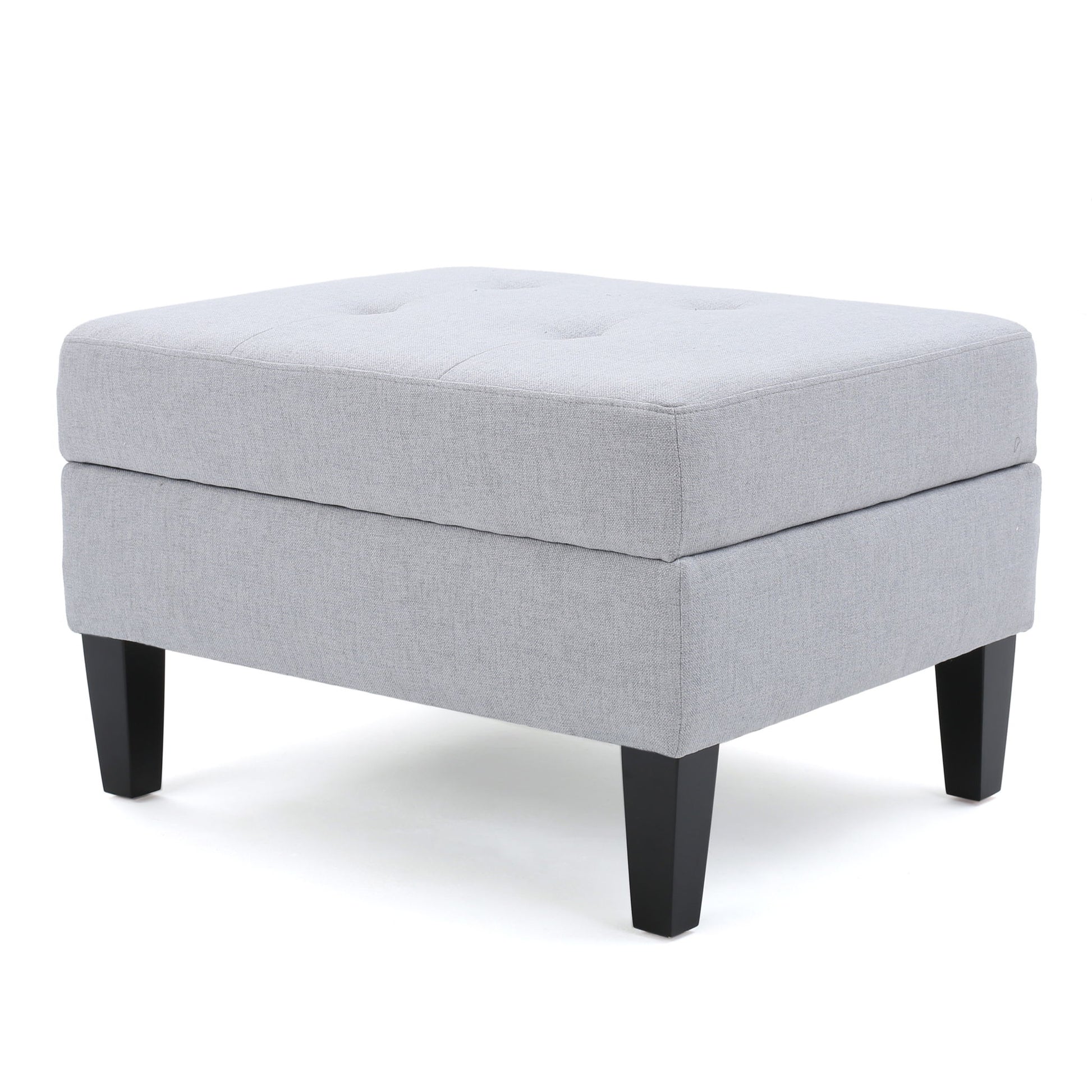 Contemporary Storage Ottoman With Tufted Waffle Stitching - Light Gray