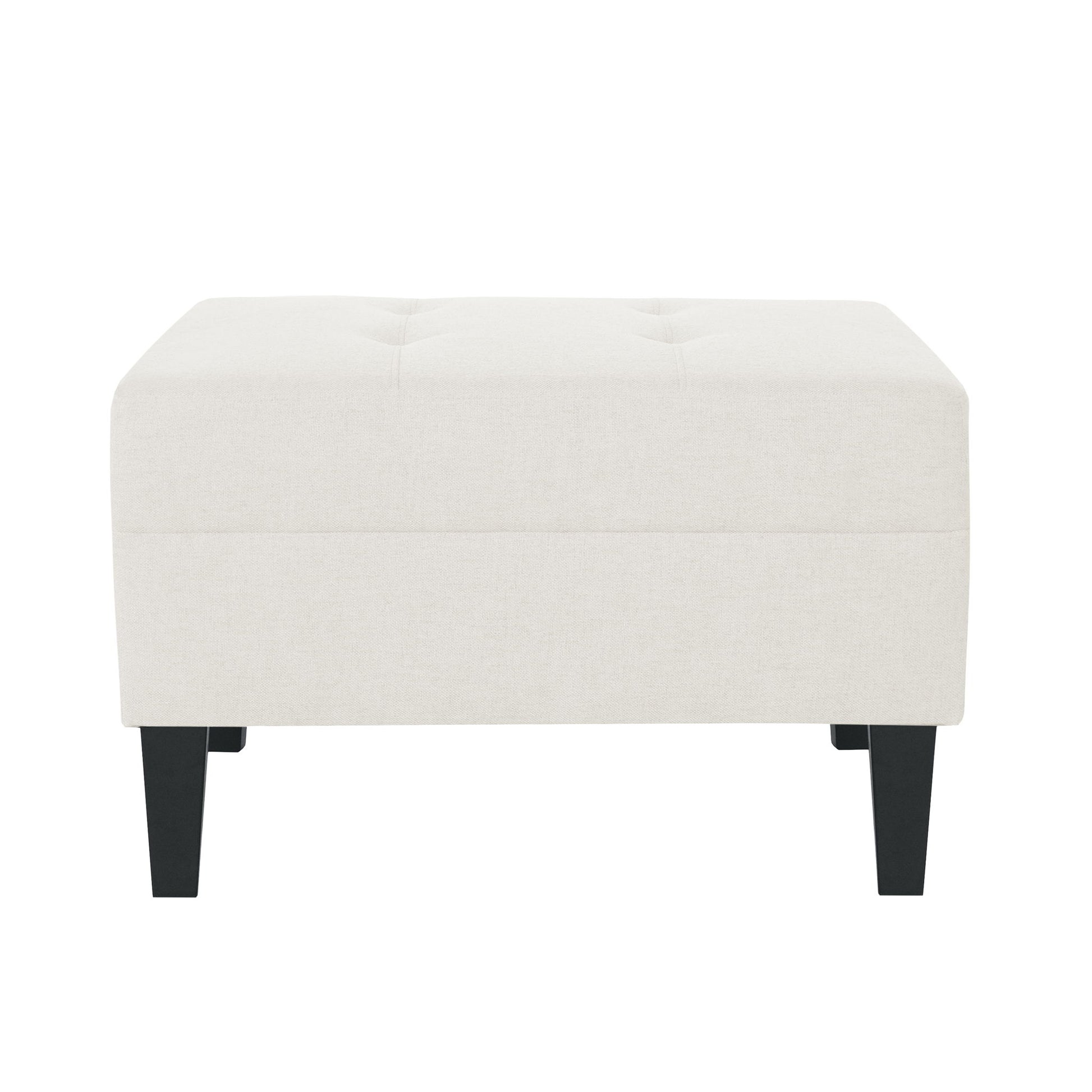 Ottoman With Birch Wood Legs And Cushioned Top For Comfort - Ivory