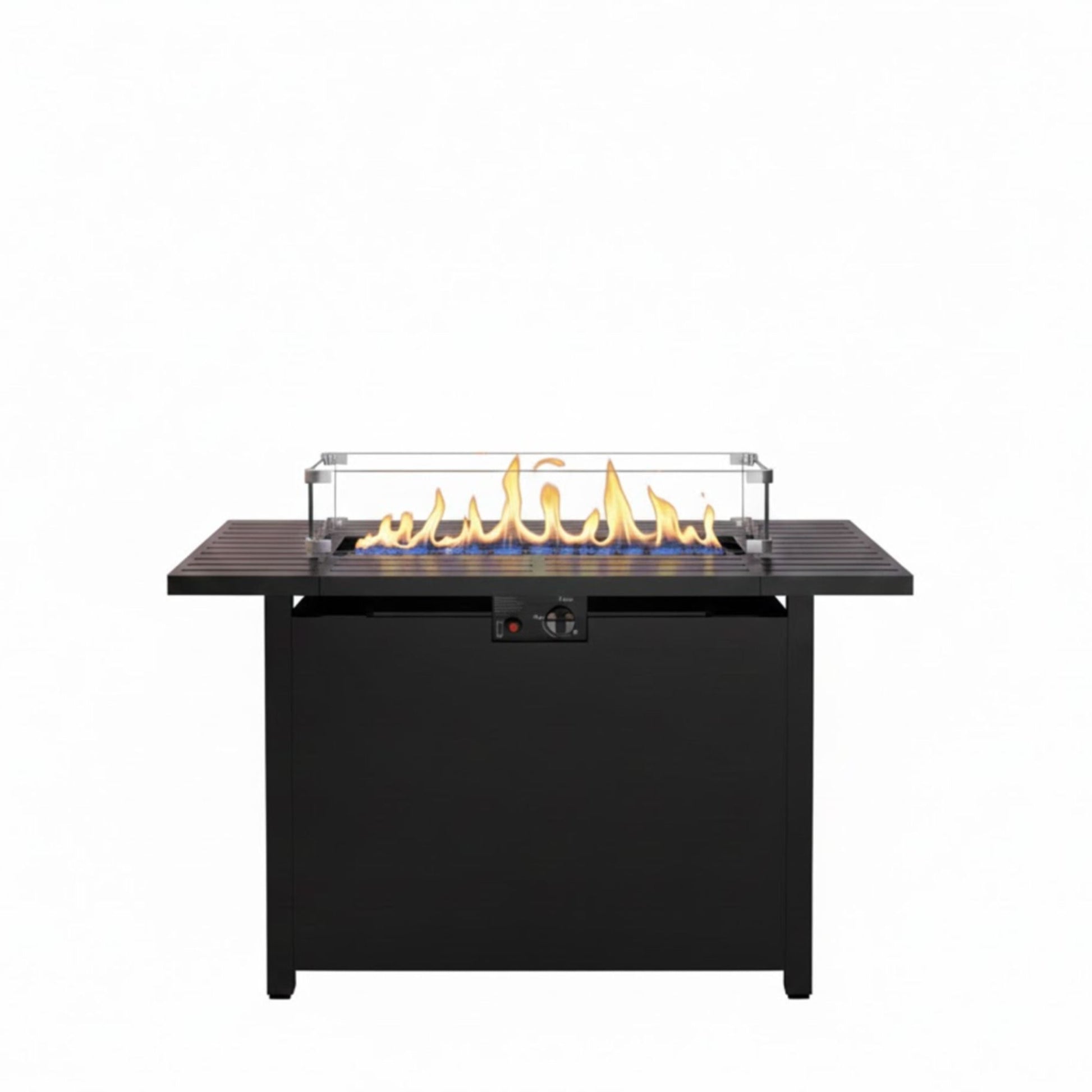 Outdoor 2 In 1 Gas Fire Pit Table With Lid & Glass Shield, Stainless Burner, Lava Rock, Rectangular Design - Black