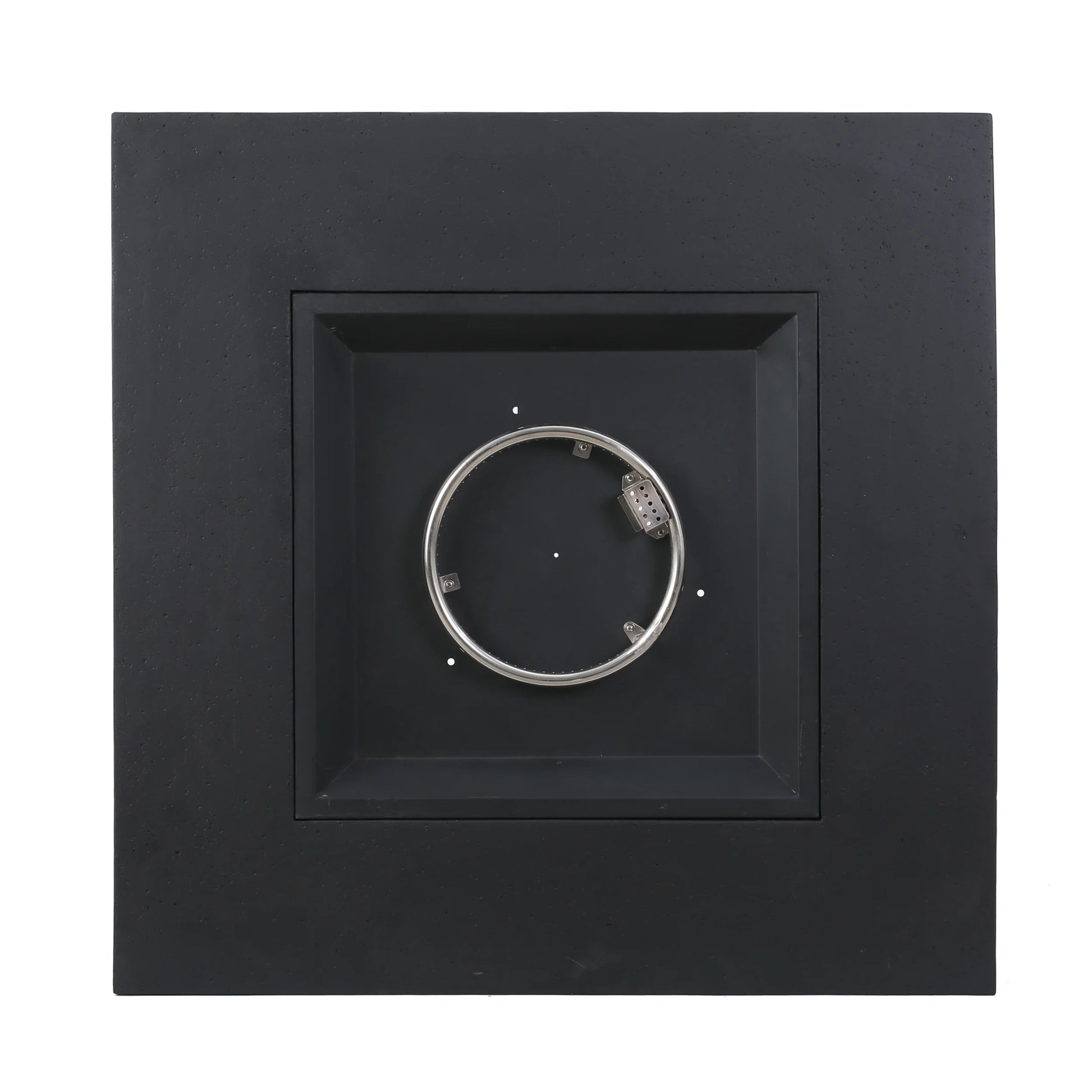 This outdoor propane fire pit features a modern design with a dark grey smooth concrete finish. It provides warmth and ambient lighting, making it an ideal addition to patios or outdoor seating areas.