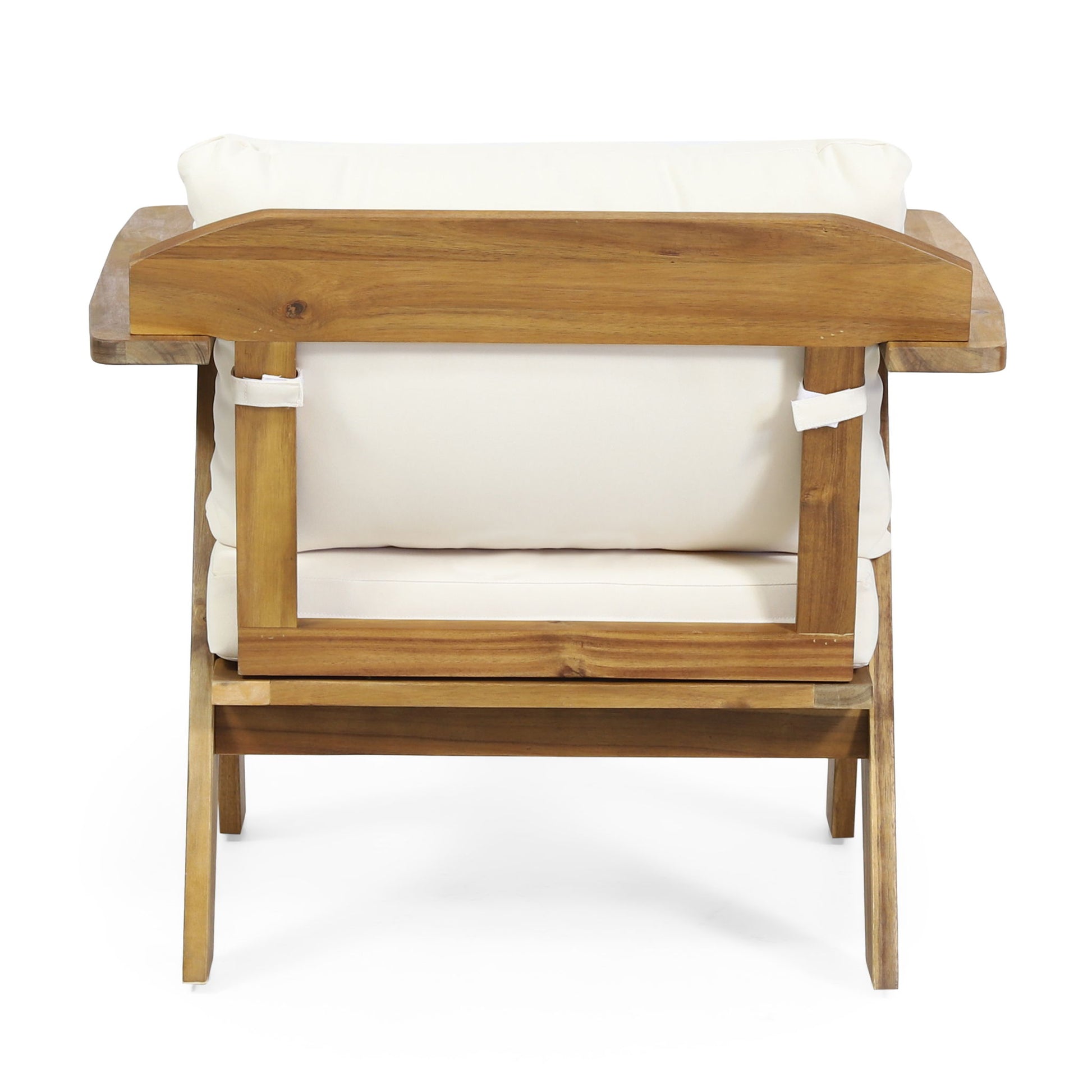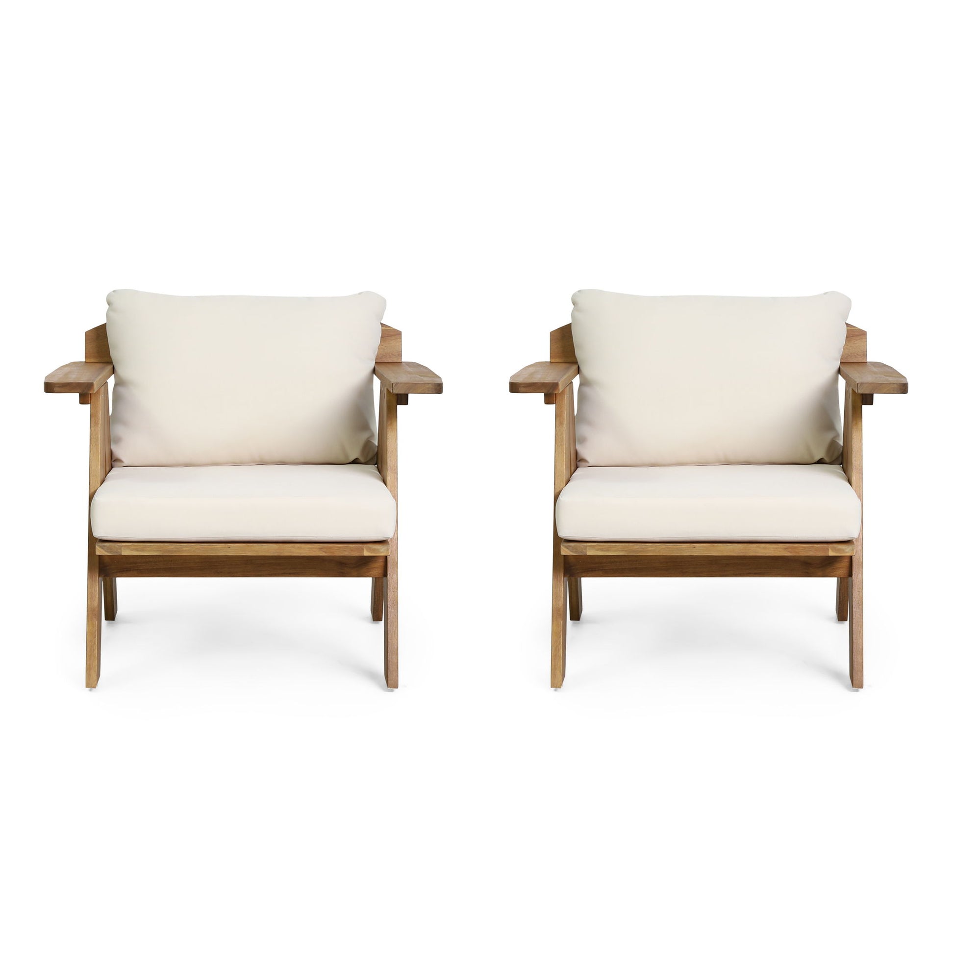 Outdoor Acacia Wood Club Chairs With Cushions (Set of 2) - Teak / Beige