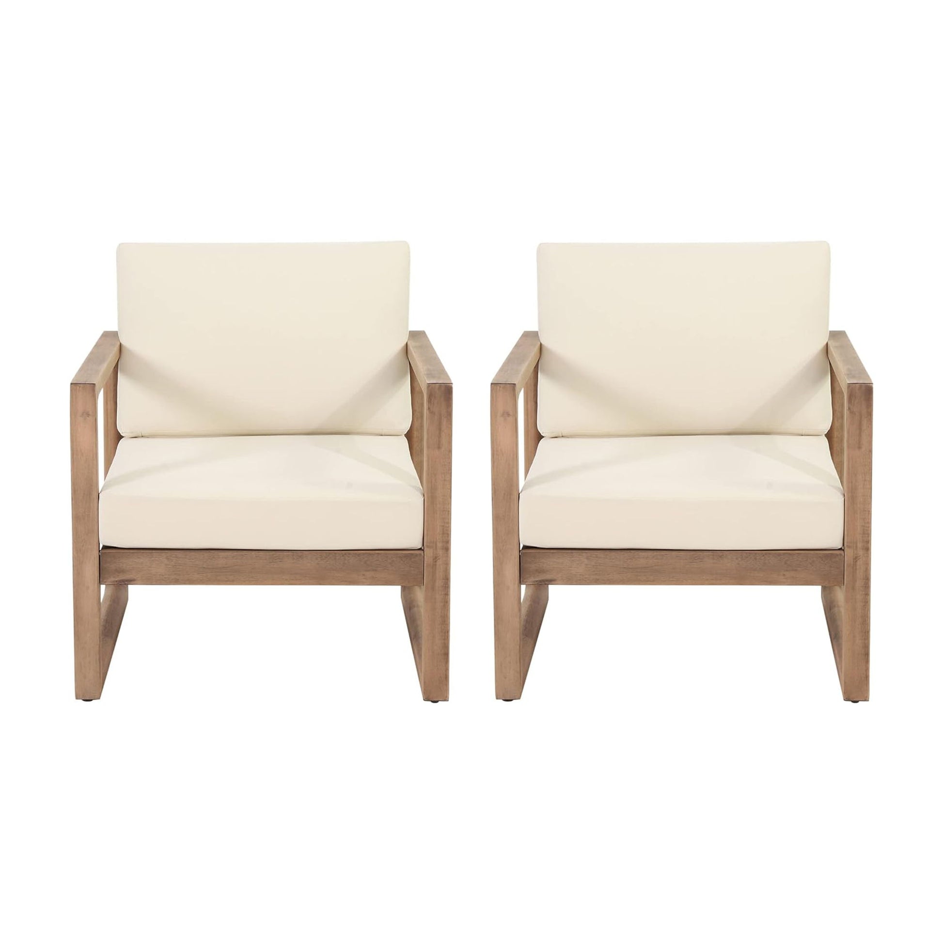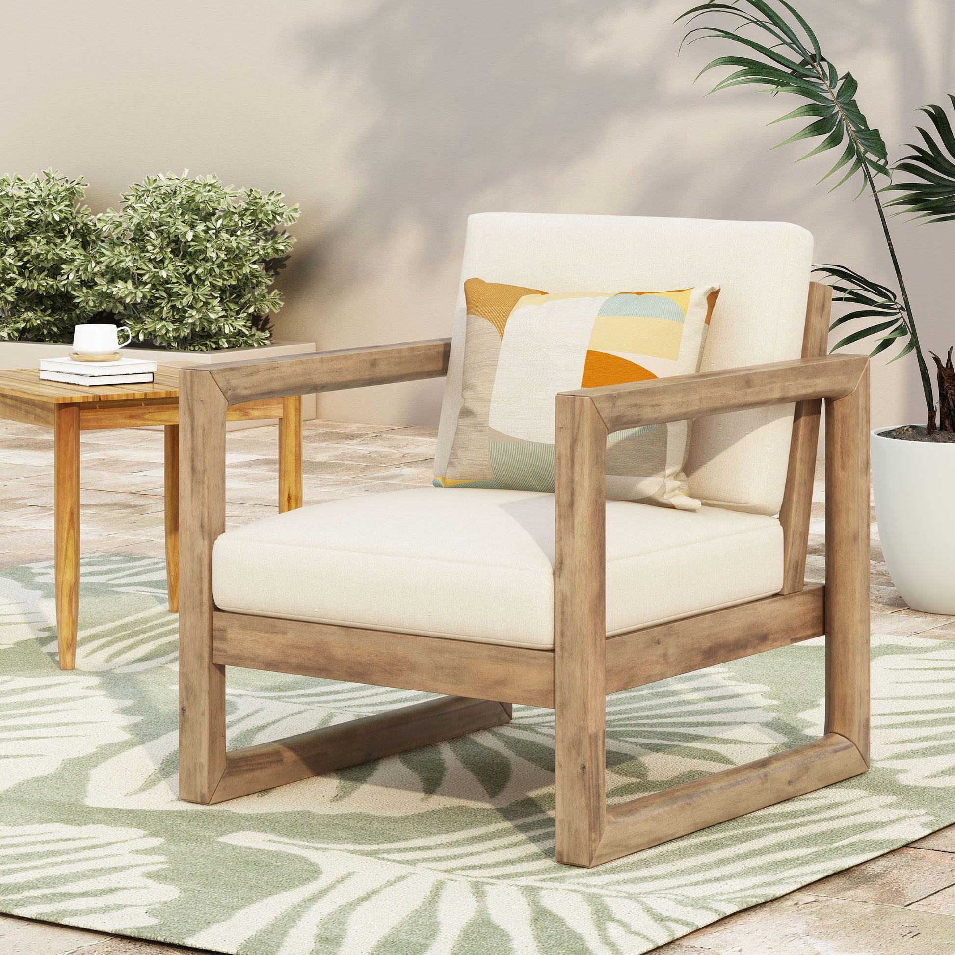 Outdoor Acacia Wood Patio Club Chair, Wood Patio Furniture, Waterproof Thick Cushion Deep Seating For Porch - Brown Wash / Beige
