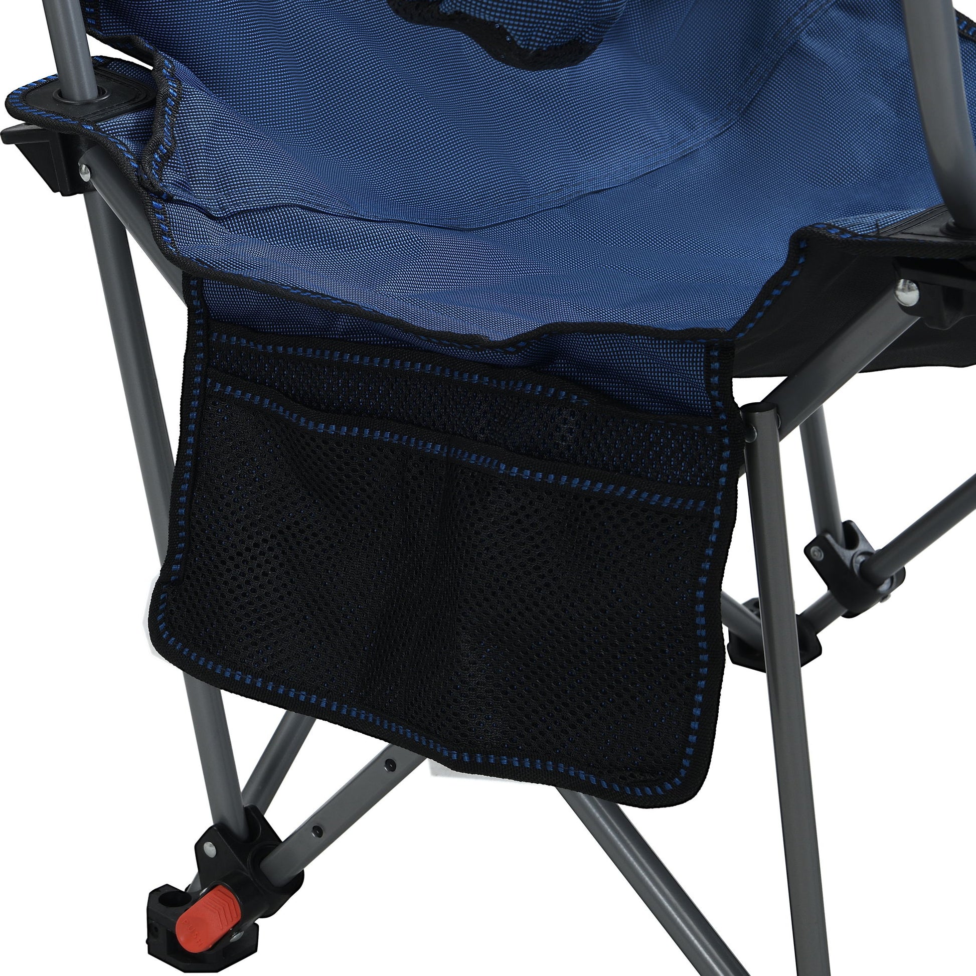 Outdoor Camping Chair With 3 Level Reclining, Side Pockets & Cup Holder, Folding With Carry Bag - Dark Blue