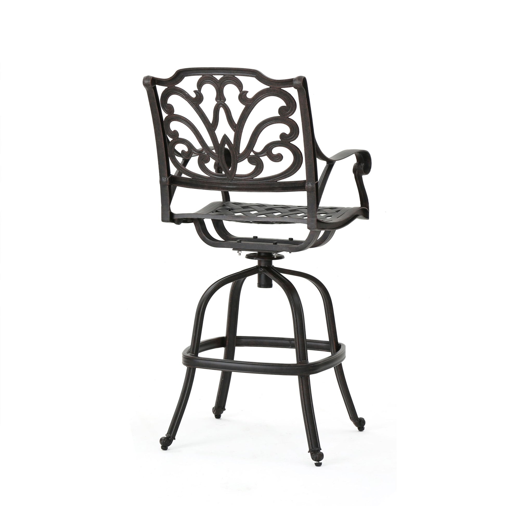 Outdoor Cast Aluminum Swivel Bar Stool With Scrolled Arms - Bronze