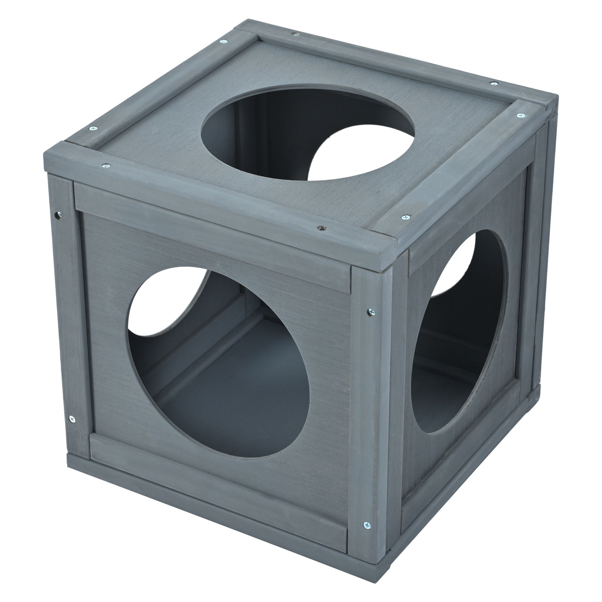 Outdoor Cat House With Shelves And Weather Protection, Removable Wood Boxes - Gray