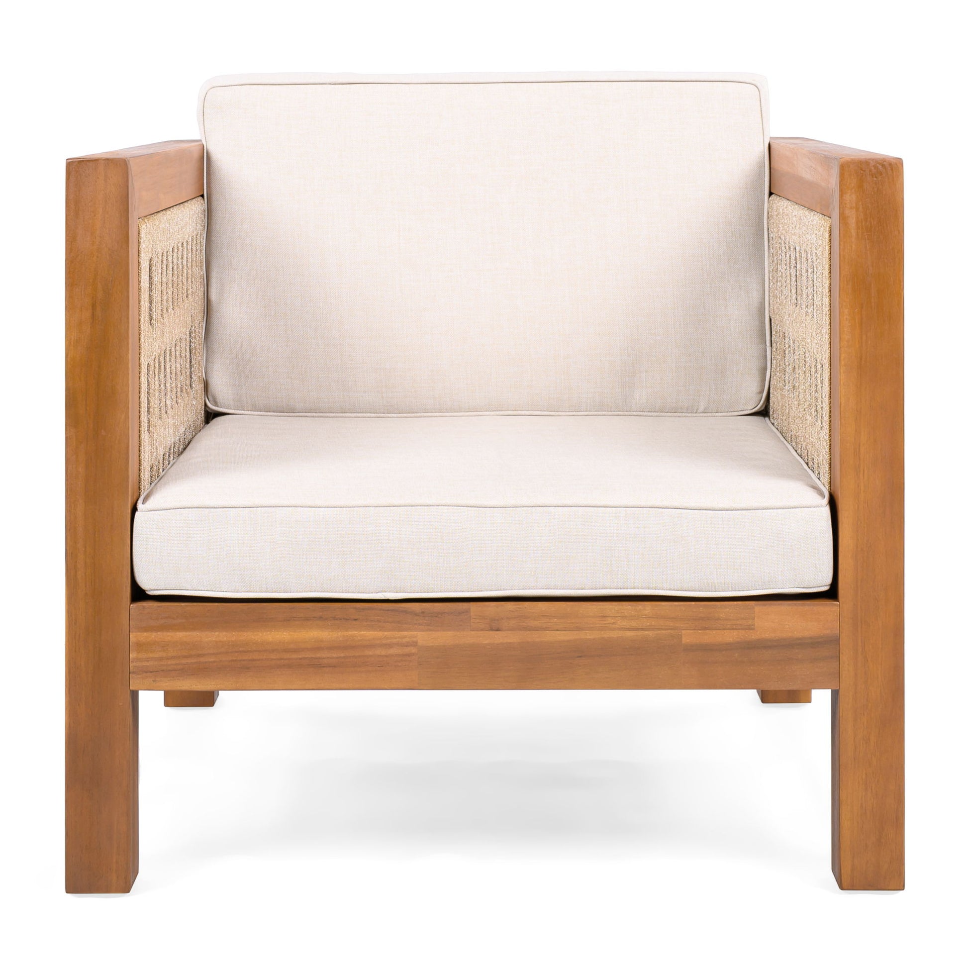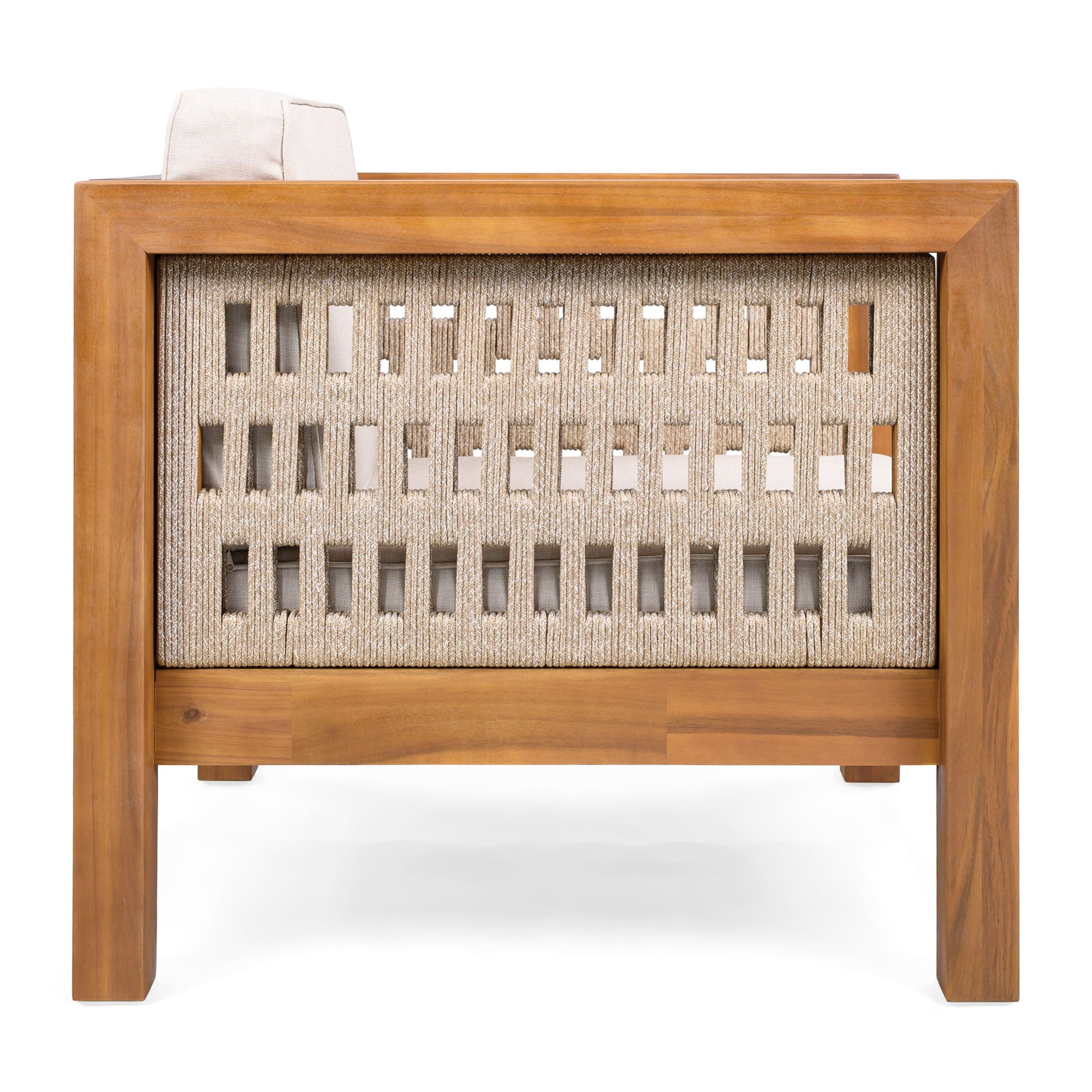 Outdoor Club Chair & Rope Arm And Cushions - Beige / Teak