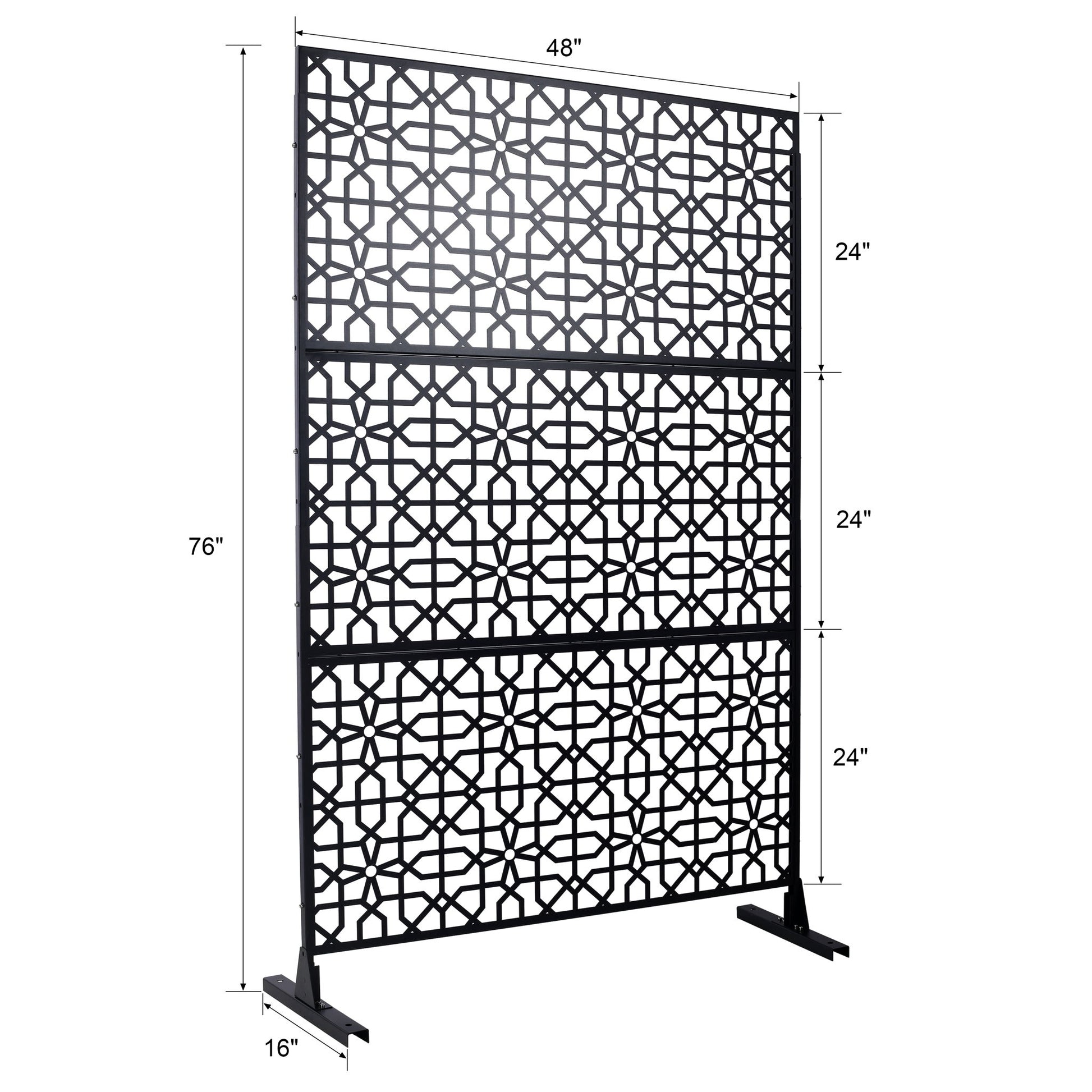 Outdoor & Indoor Privacy Screen Metal Privacy Screen Freestanding Decorative Privacy Screen Steel - Black