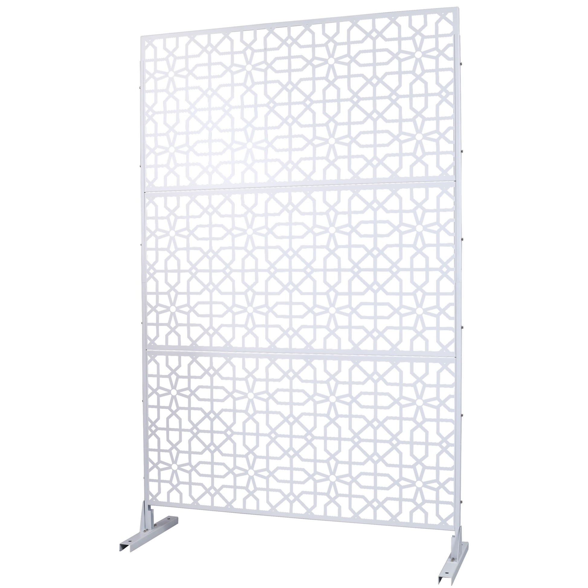 Outdoor & Indoor Metal Privacy Screen Freestanding Decorative Privacy Screen - White