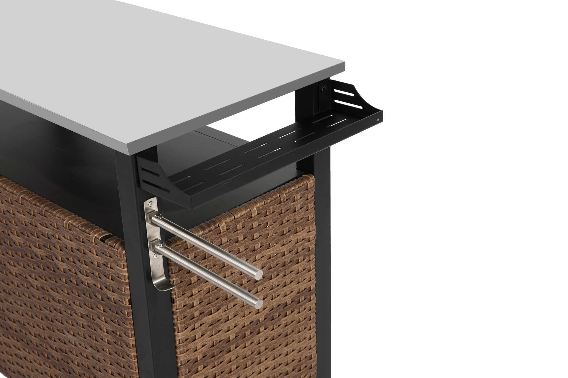 Outdoor Kitchen Wicker Island Rolling Cart & Storage Cabinet Brown
