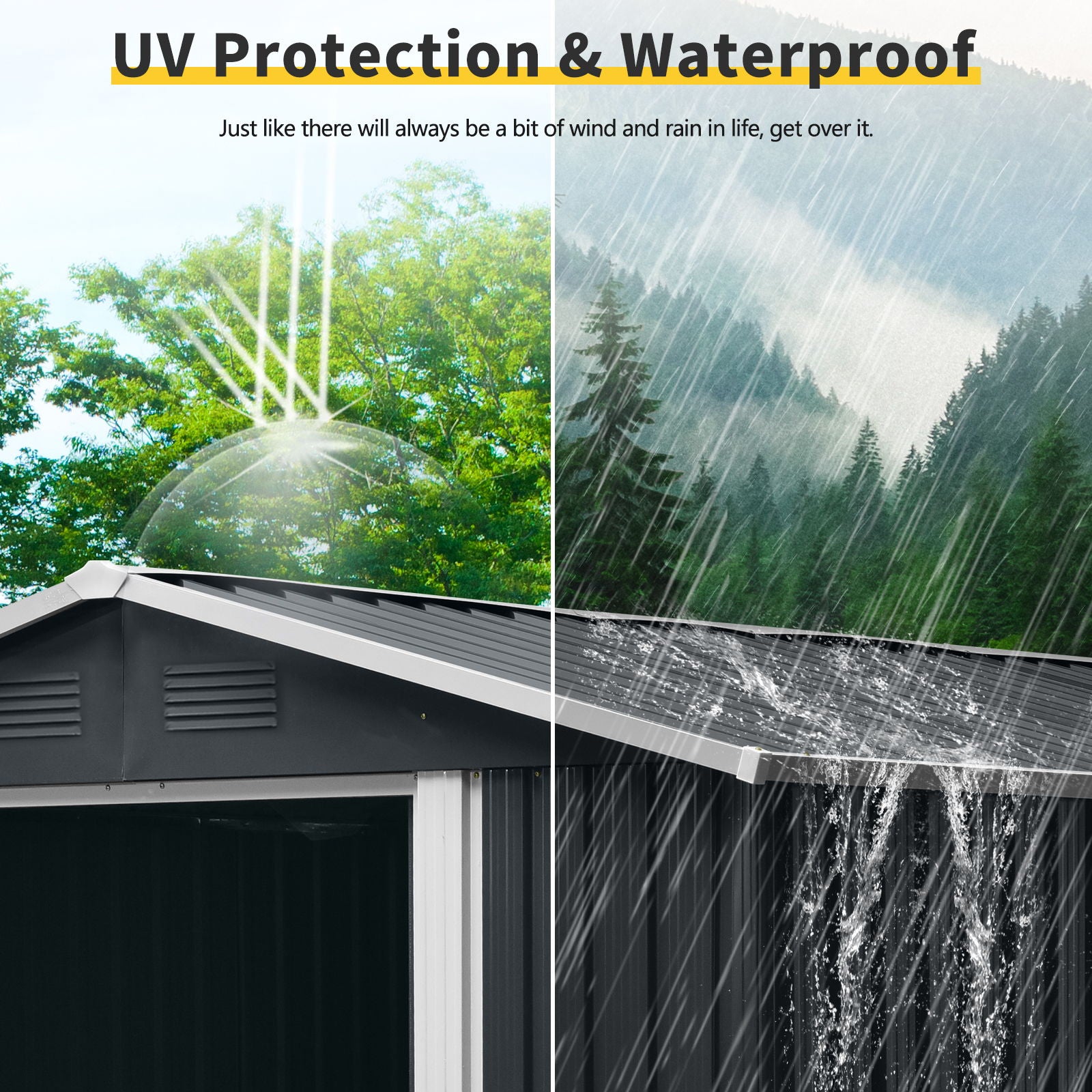 Outdoor Metal Storage Shed With Metal Floor Base, With Window - Coffee