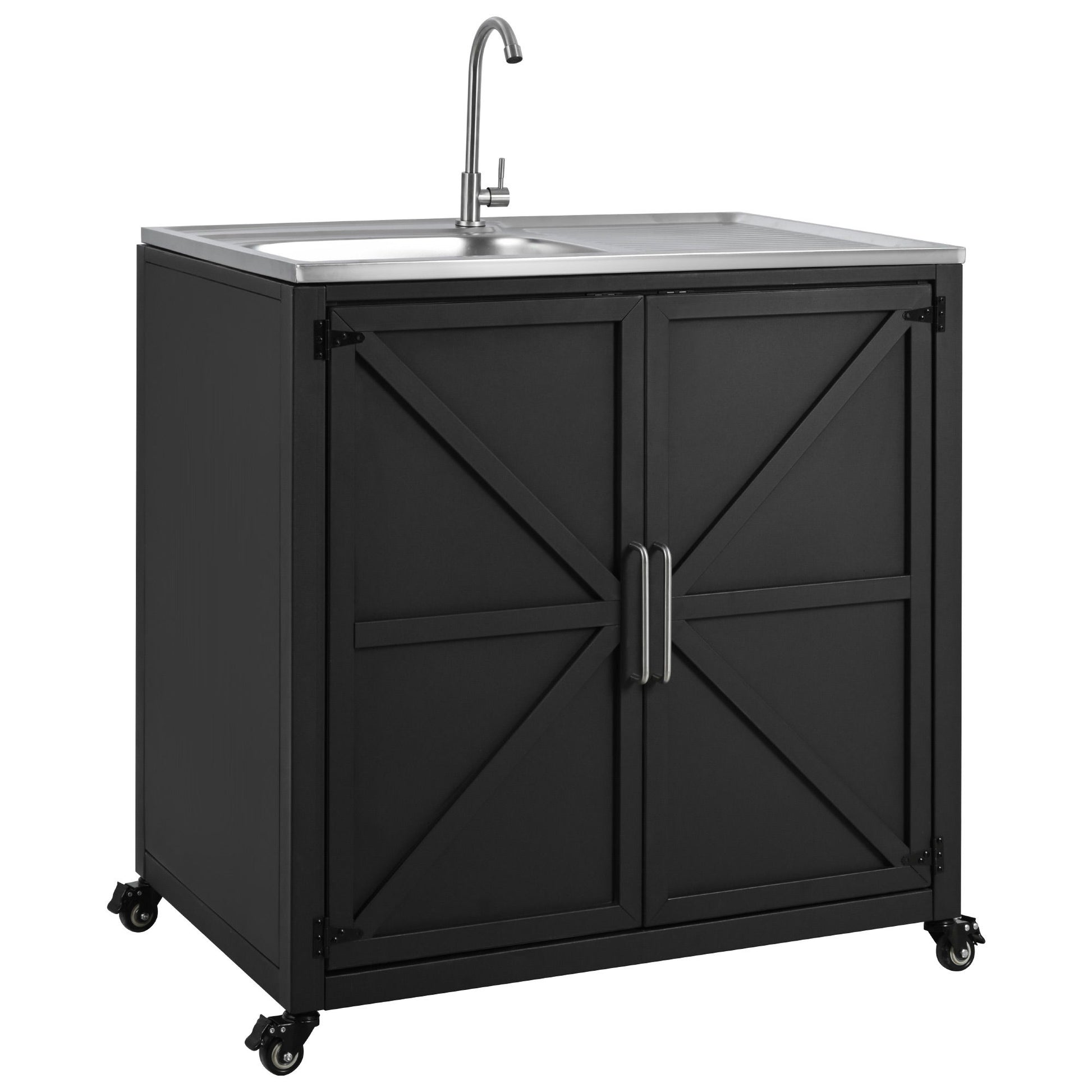 Outdoor Movable Kitchen Sink Patio Modular Kitchen Sink Station With Cabinet For Garden, Patio, Backyard - Matte Black