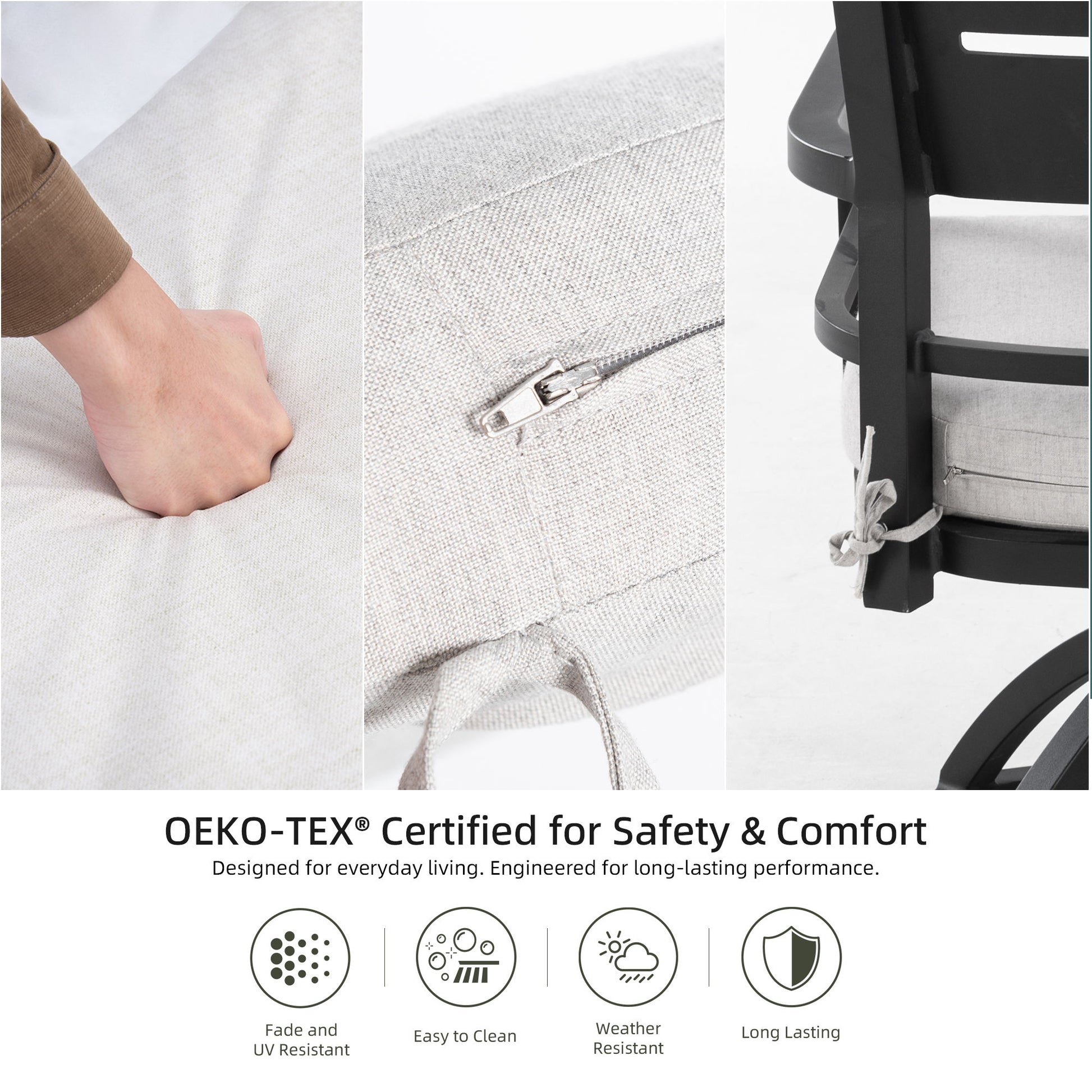 - Weather-Resistant Sunbrella Cushions: Premium Cast Silver Sunbrella fabric is fade and stain-resistant; high-density foam cushions retain shape and comfort, with removable, zippered covers for easy cleaning.