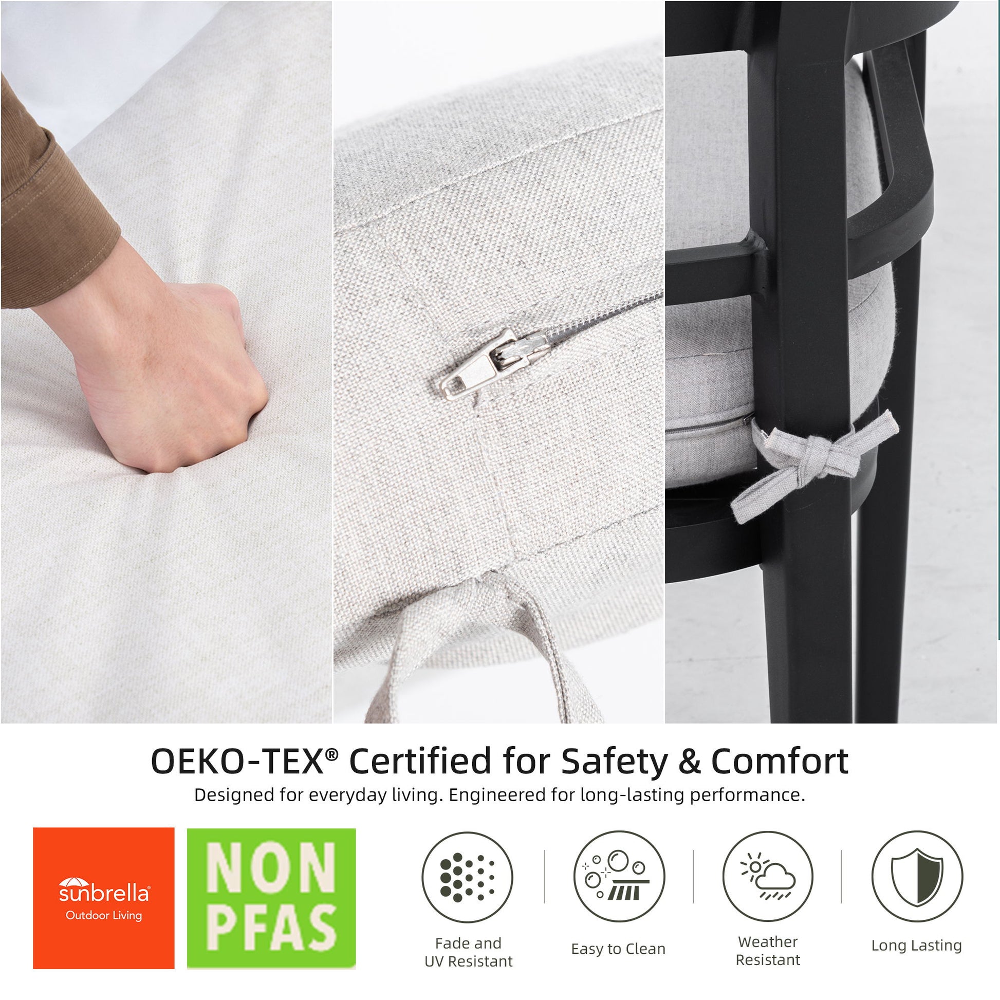 - Weather-Resistant Sunbrella Cushions: Premium Cast Silver Sunbrella fabric is fade and stain-resistant; high-density foam cushions retain shape and comfort, with removable, zippered covers for easy cleaning.