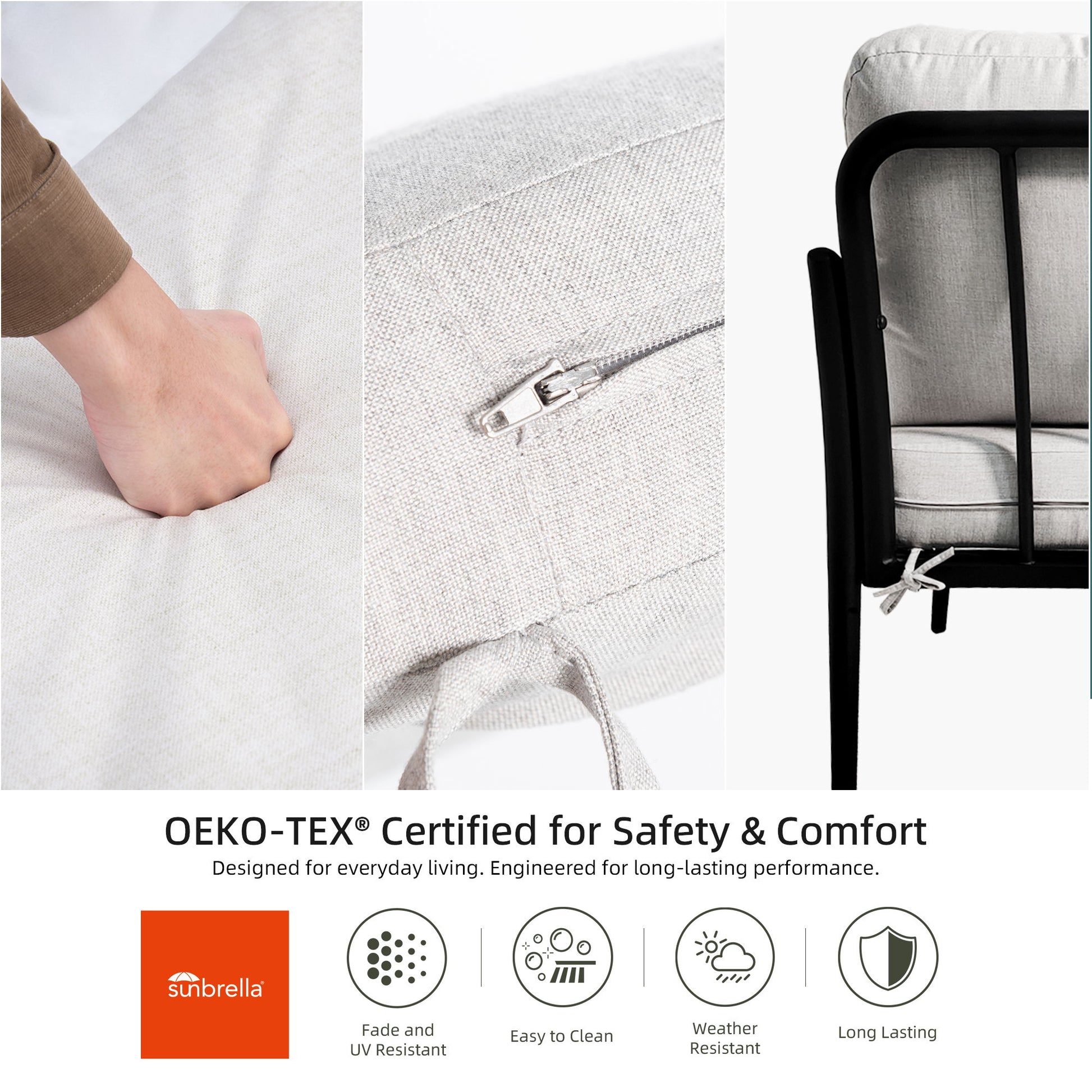 - Comfortable Seating: Upholstered in premium Sunbrella fabric with high-density foam filling, offering resilient, supportive, and long-lasting comfort that maintains its shape.