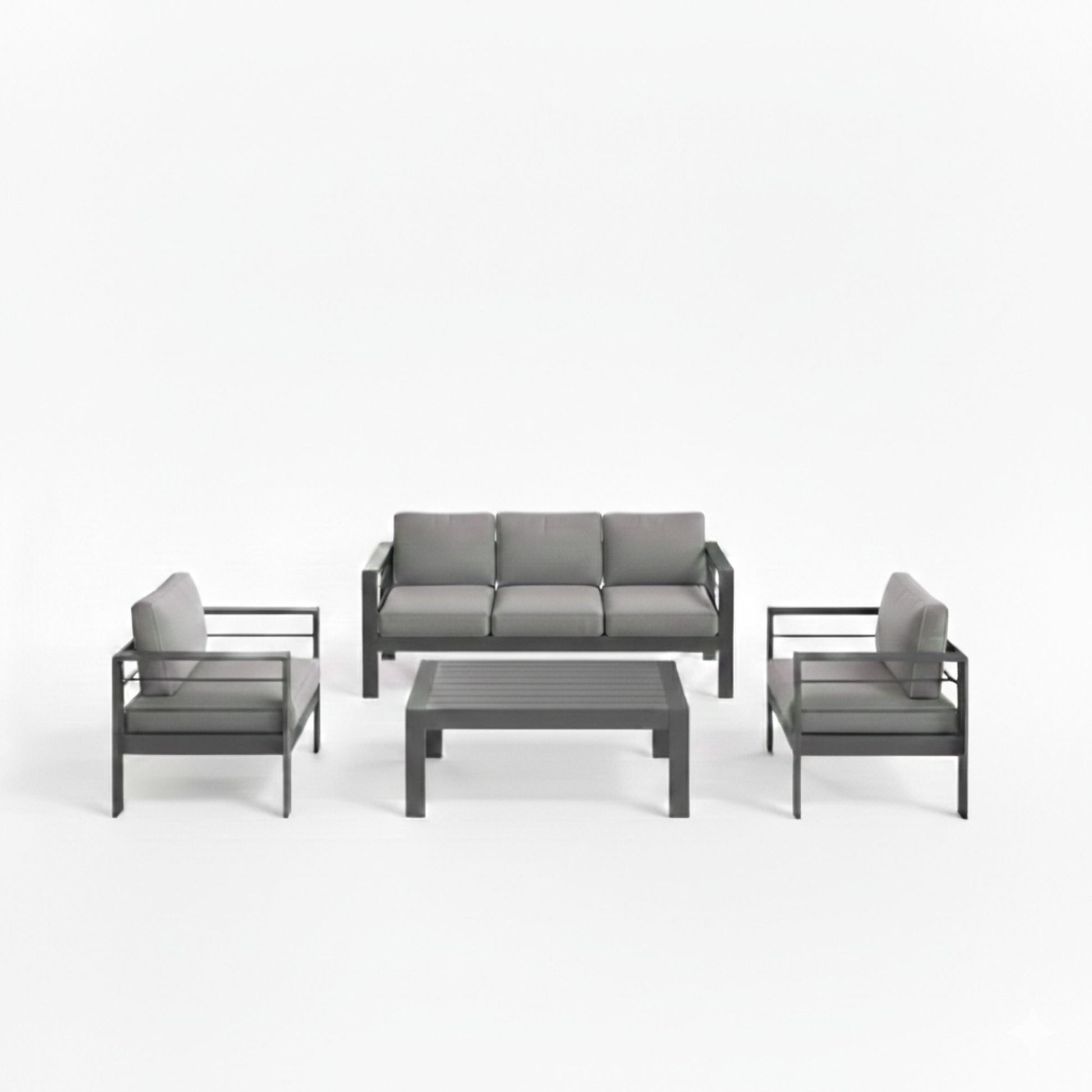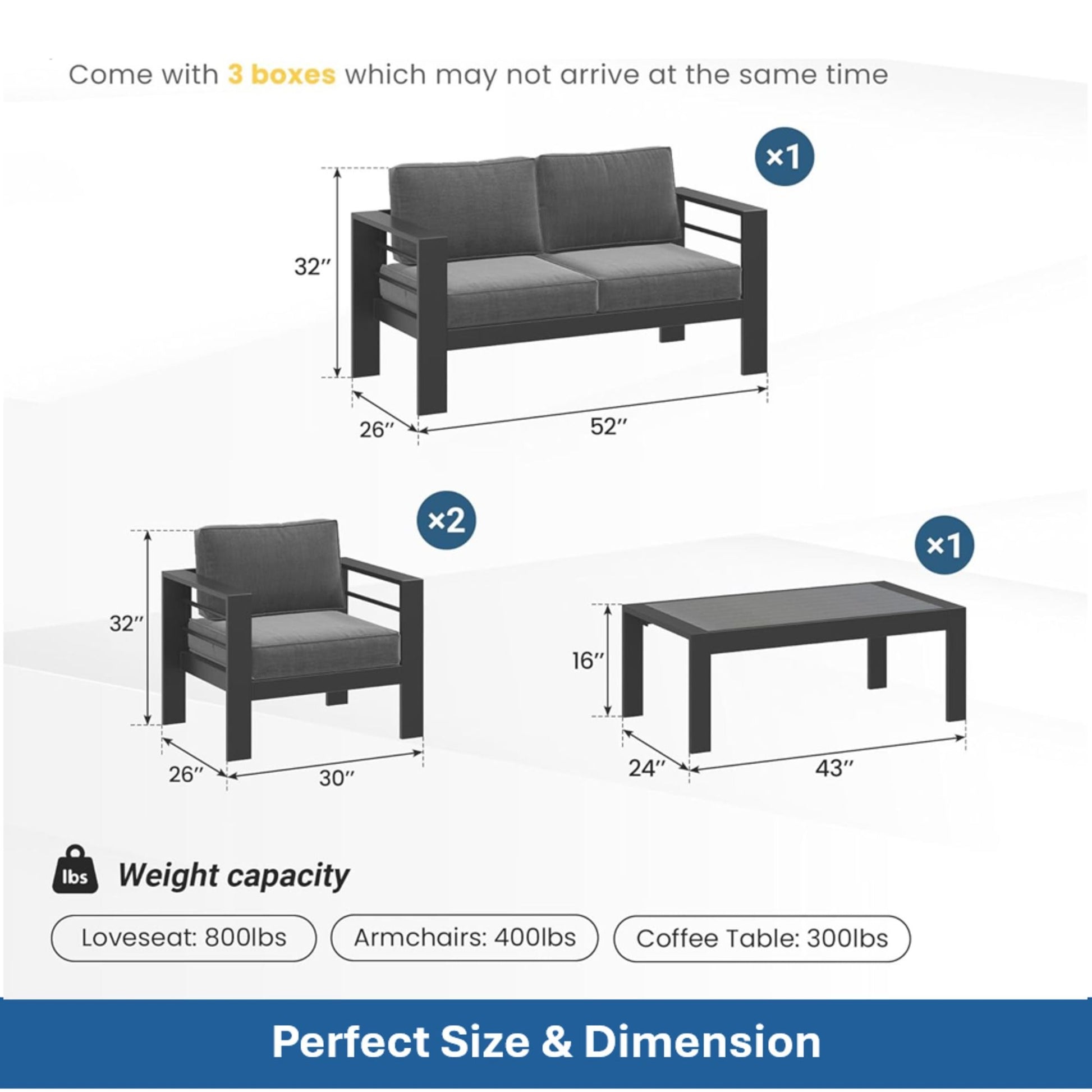 4 Piece Patio Conversation Set With Cushions, Powder Coated Frame, Coffee Table - DARK Gray