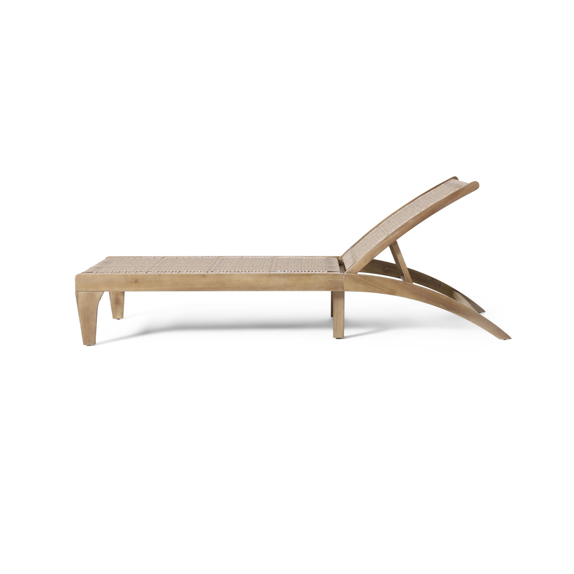Outdoor Rattan Wicker Chaise Lounge With Acacia Wood Frame - Light Brown