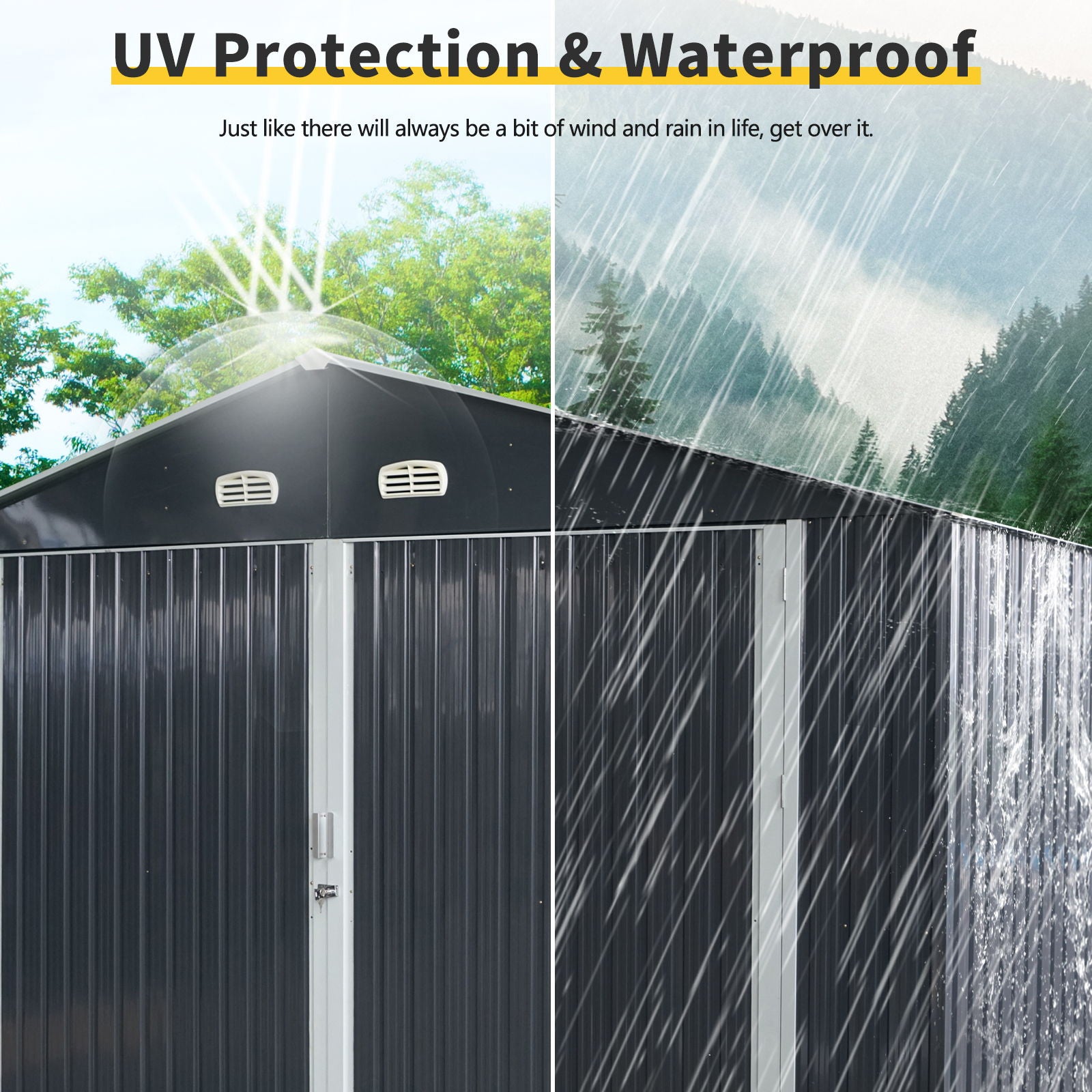 Outdoor Storage Shed Metal Garage Shed For Car, Bike, Lawnmower Backyard Tool House Building 2 Doors And 4 Vents - Black