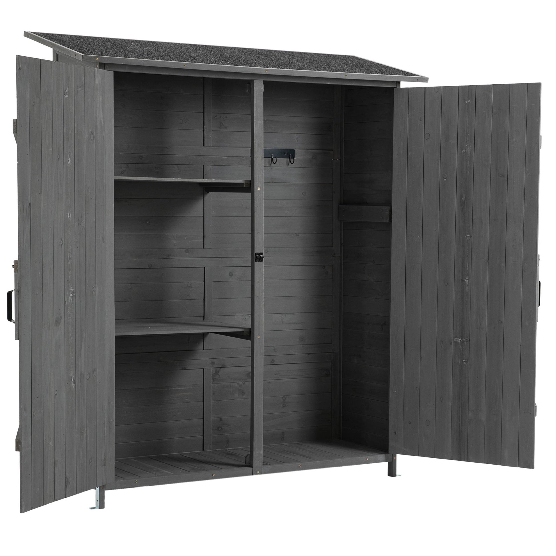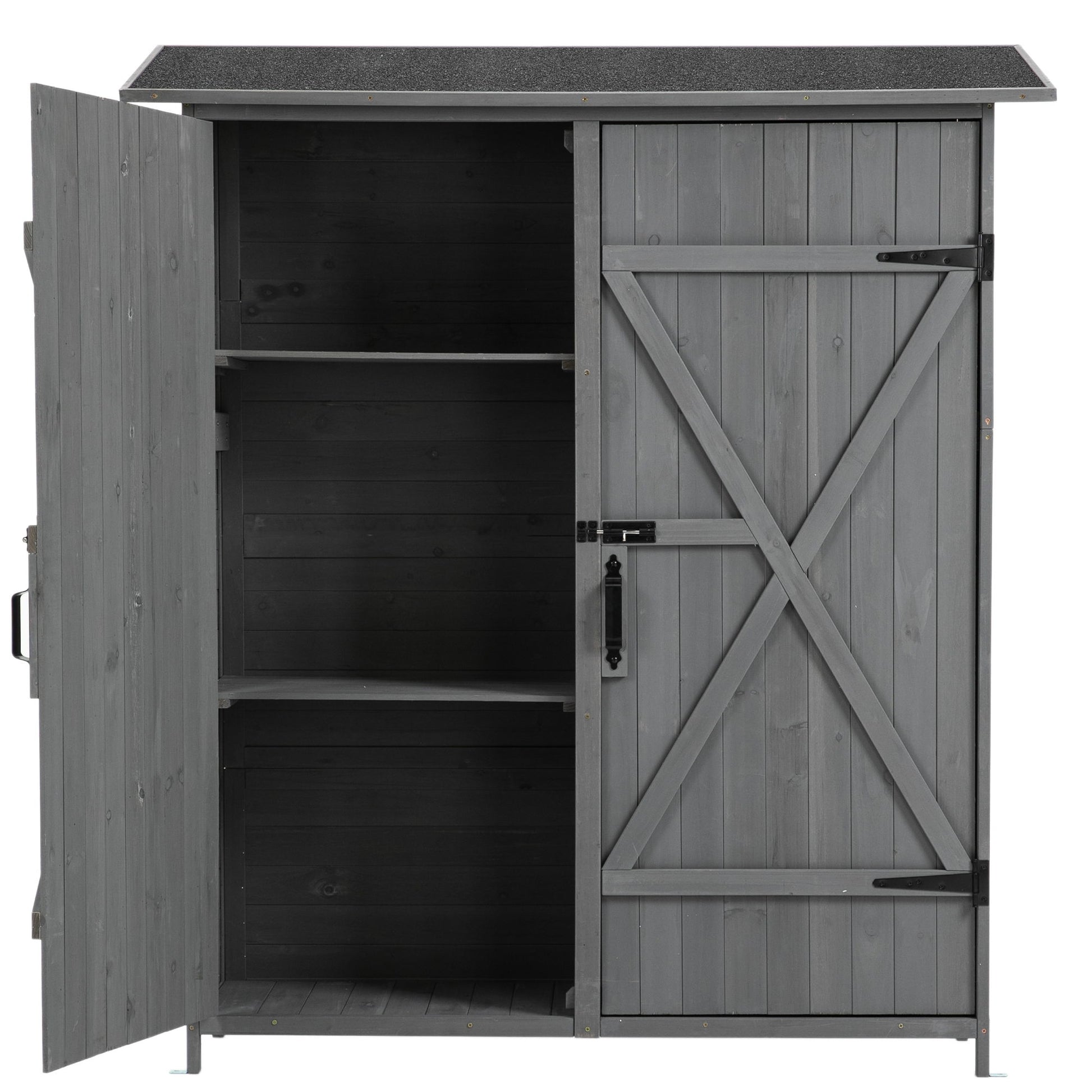 Outdoor Storage Shed With Lockable Door, Wooden Tool Storage Shed With Detachable Shelves & Pitch Roof - Gray