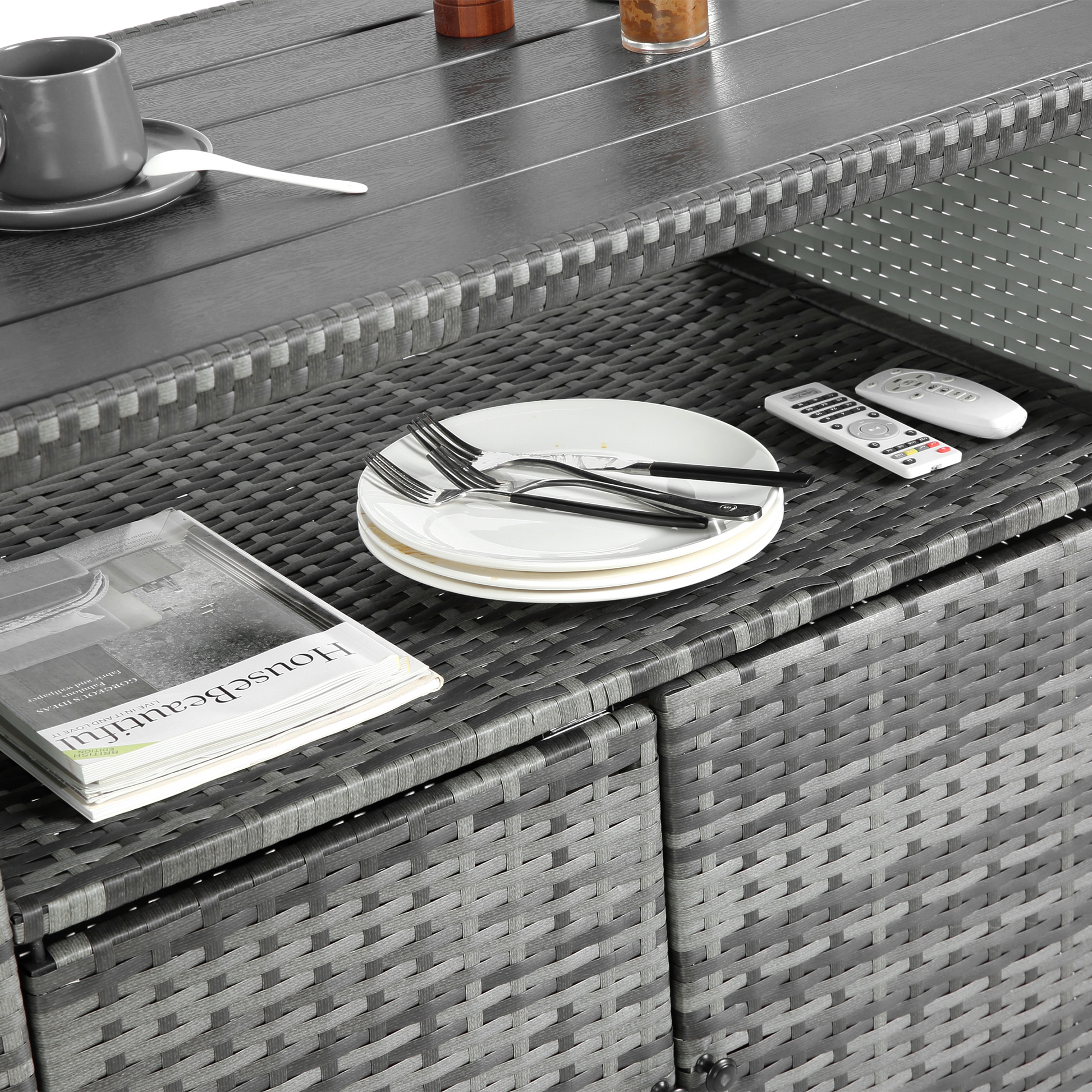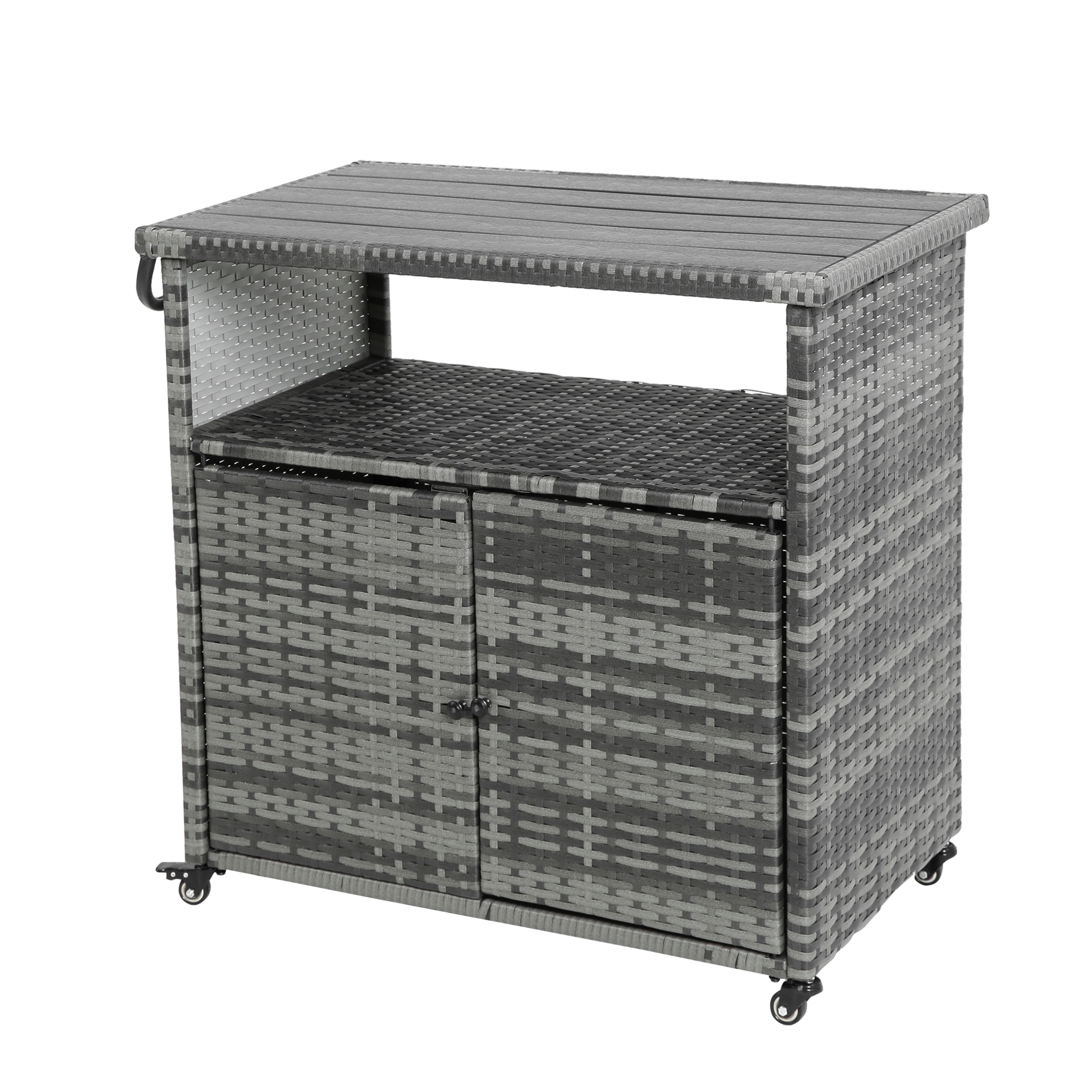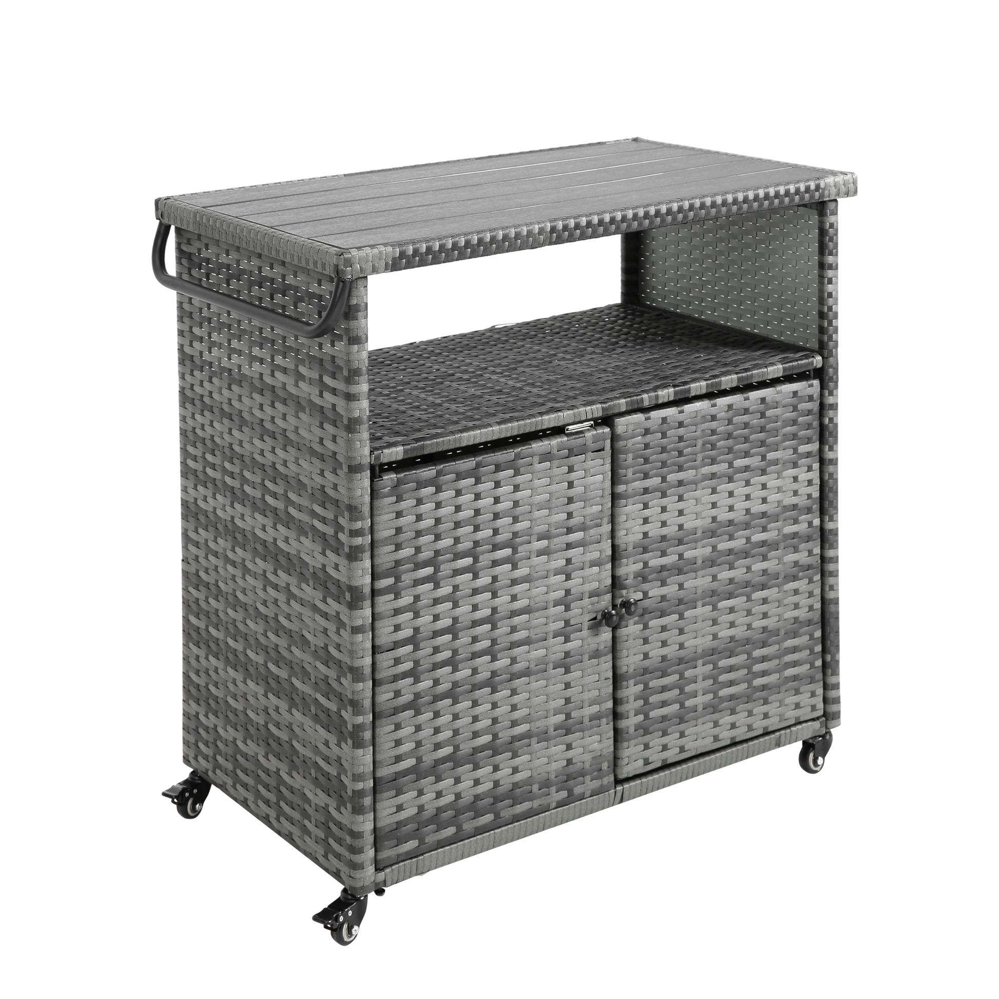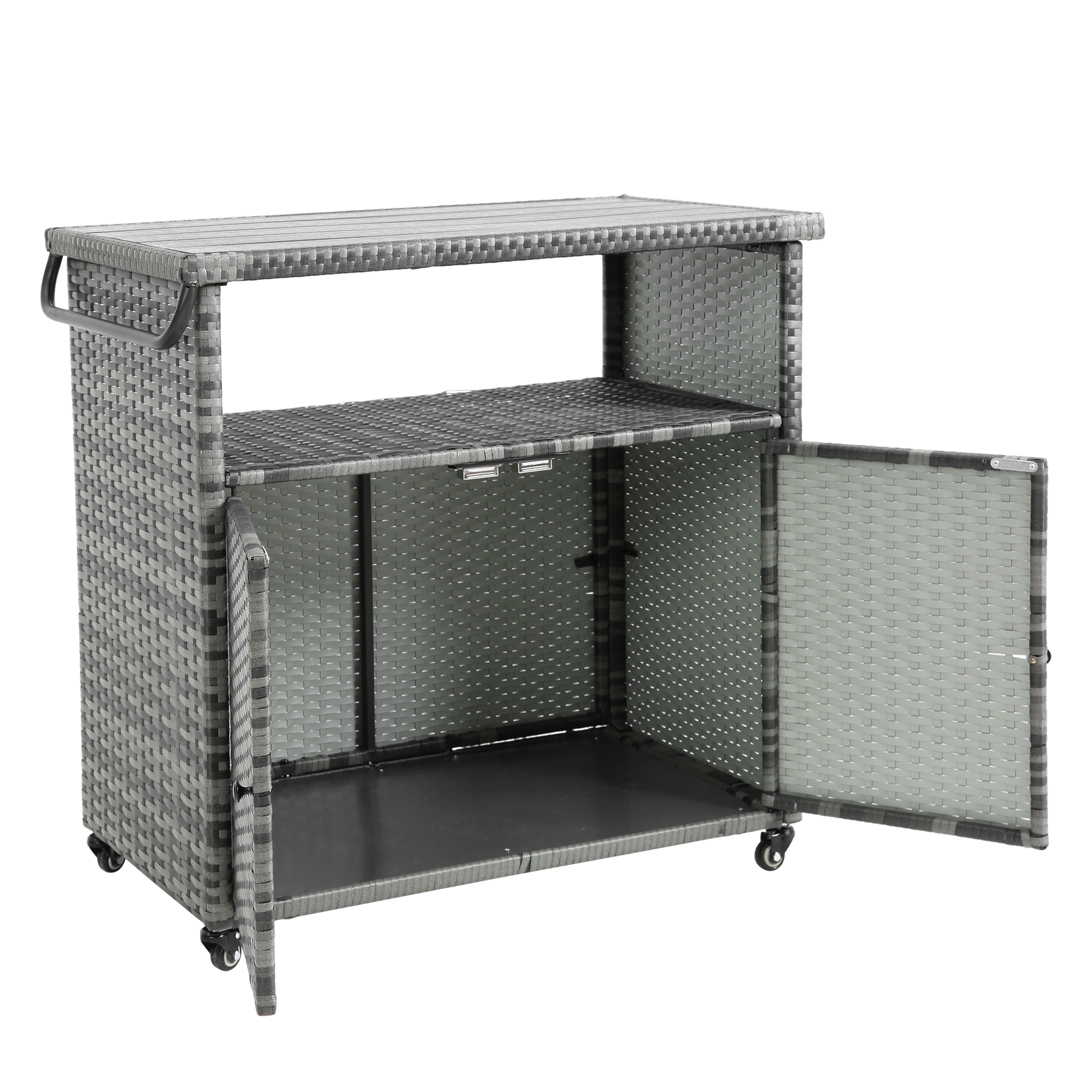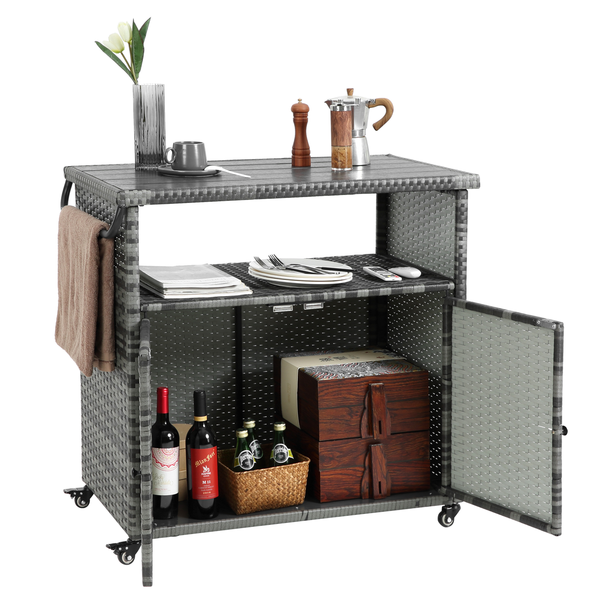 This outdoor wicker bar cart is designed for convenient beverage serving and storage. Perfect for patios, backyard gardens, and poolside parties, it combines functionality with a stylish rattan aesthetic.