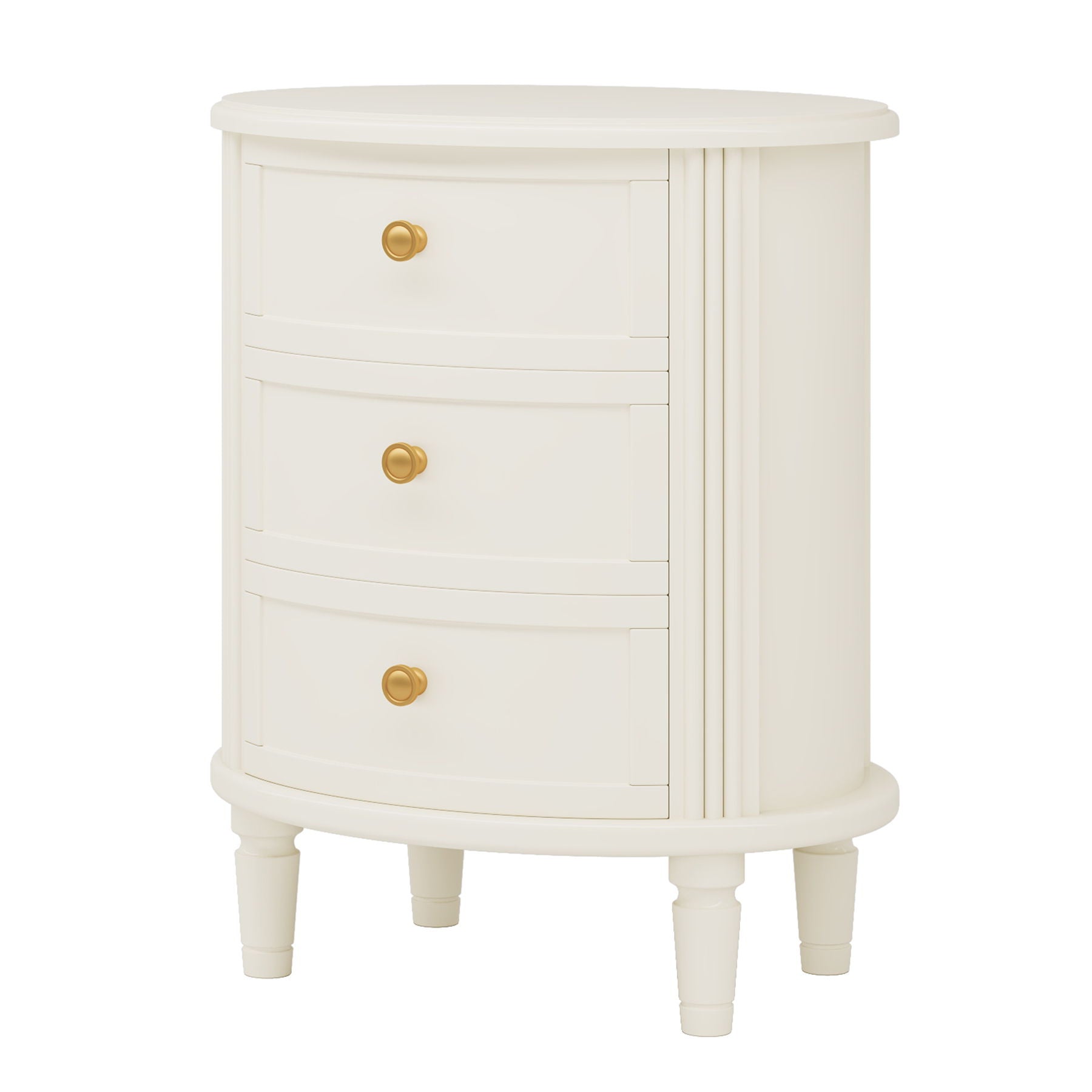 Oval Nightstand With 3 Drawers, Bedside Table - White