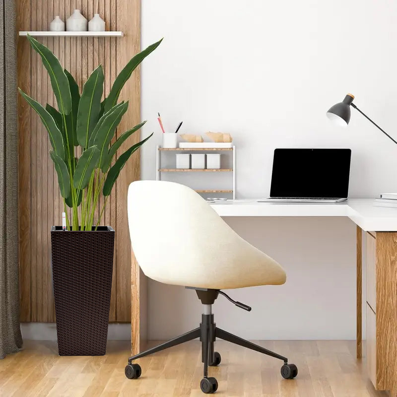 This set of two brown square planters with a faux rattan finish is ideal for enhancing outdoor areas such as patios, porches, or backyards. They offer both stylish design and practical features with an automatic watering system.