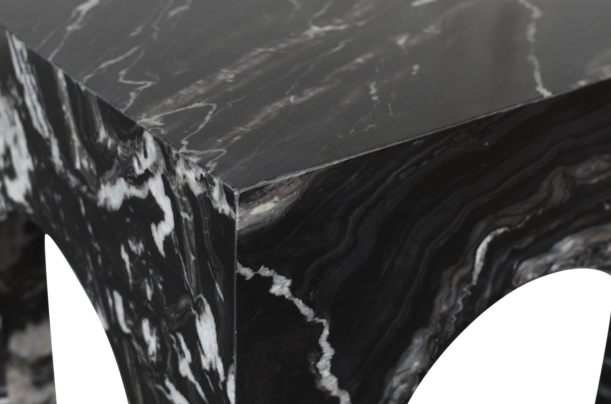 Discover the Palermo marble with veining end table, showcasing an arched shape and Art Deco design, making it a stunning centerpiece for any space. Crafted for both style and durability, it blends luxury with practicality, becoming the focal point of gatherings and conversations. Elevate your living area with its timeless appeal and sophisticated design.