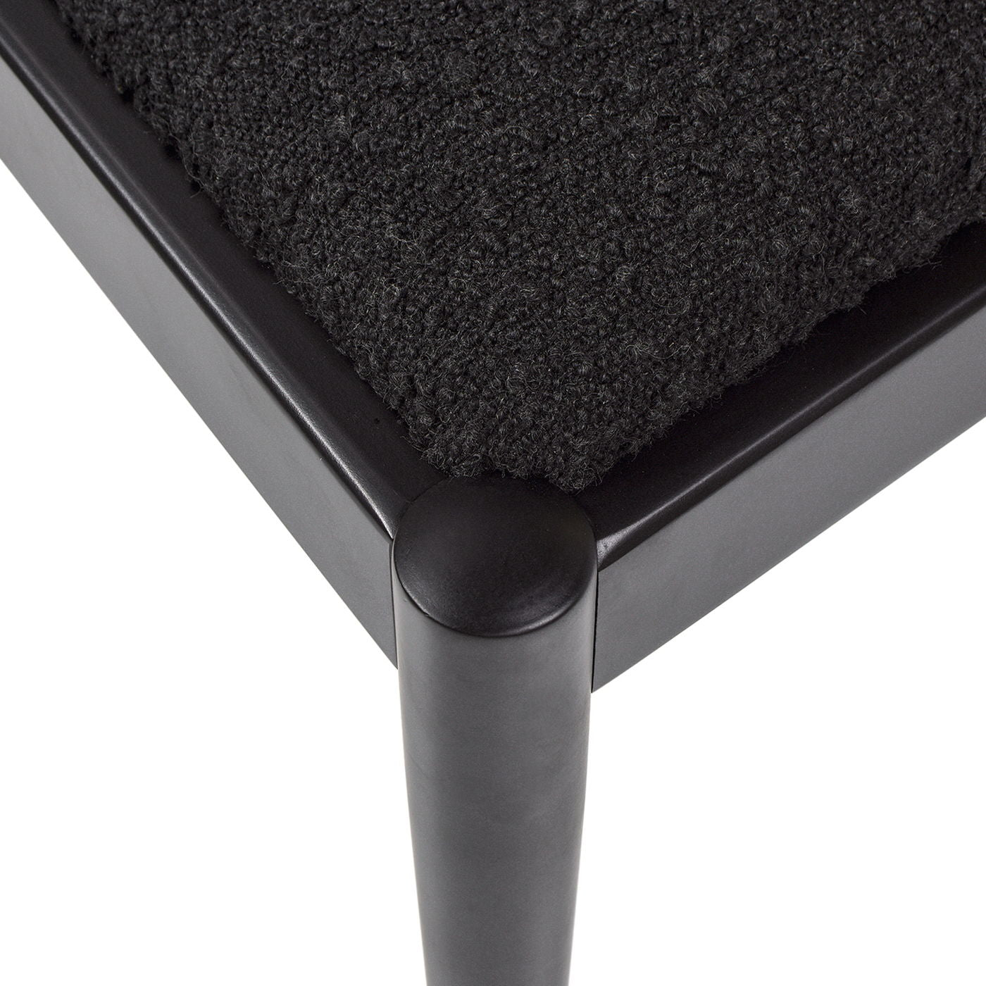 - Luxurious Upholstery: Upholstered in charcoal black boucle, the chairs offer a tweed, faux lambskin texture that enhances comfort and provides a plush seating experience.
