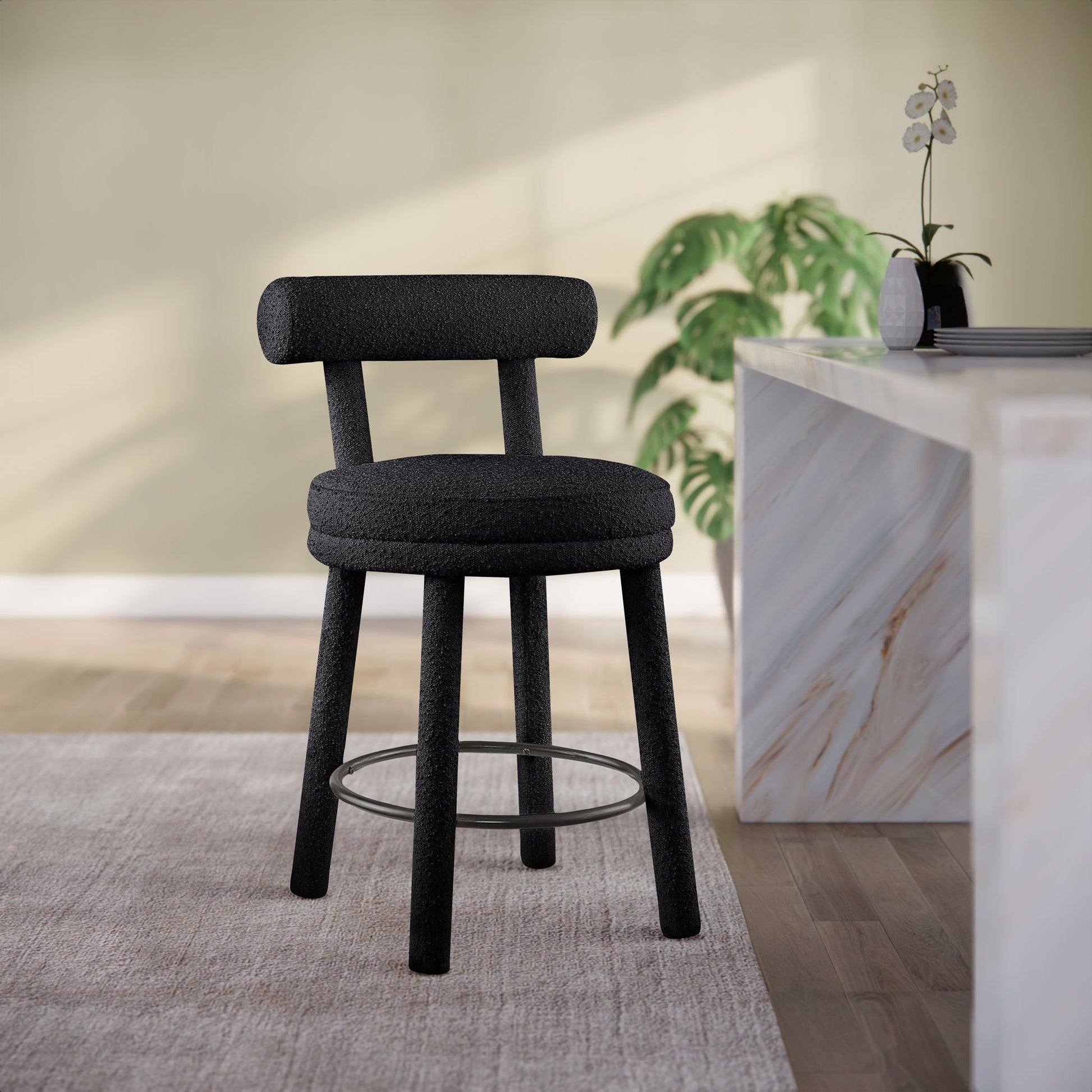 Make sure guests and family want to stay 'till closing time when you add these Parlor boucle fabric bar/counter stools to your space. This set of two counter-height stools boasts rich boucle fabric upholstery with rolled backs and plush seats for an inviting seating experience. These stools feature a solid wood frame and a convenient matte black metal footrest that encircles the bottom for resting your feet.