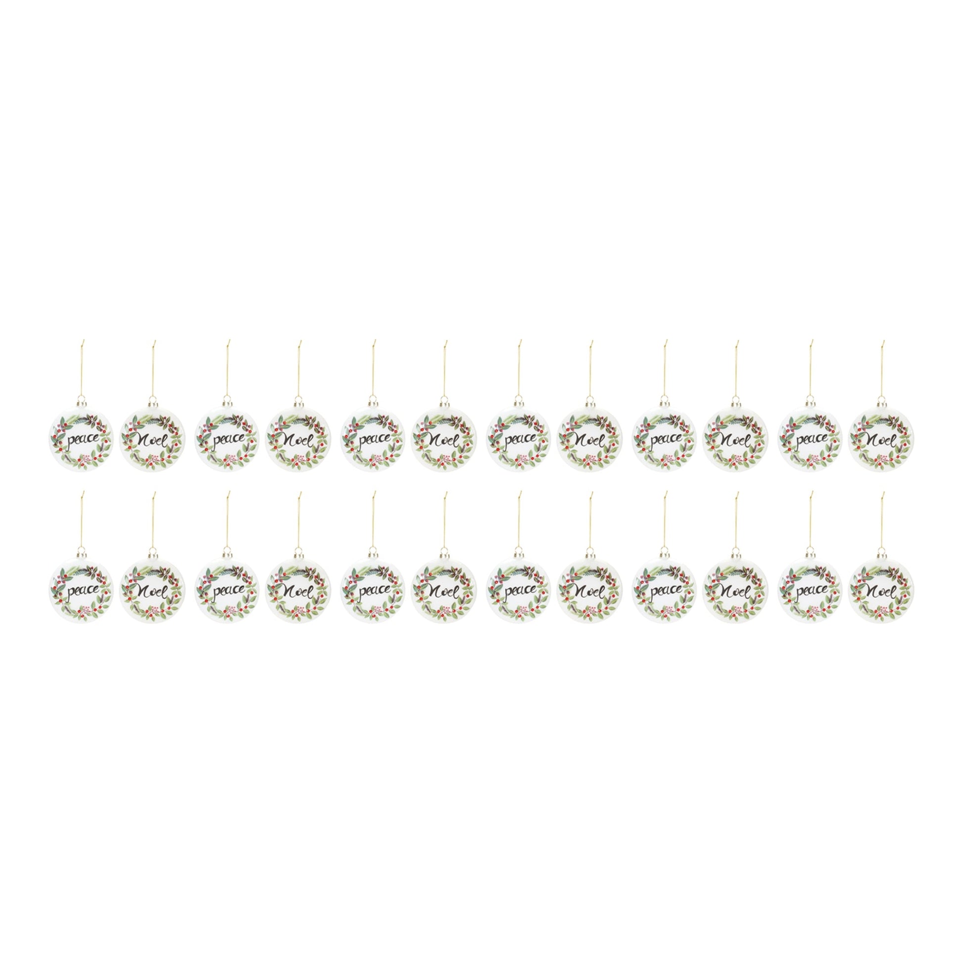 Peace and Noel Wreath Disc Ornament (Set of 12)