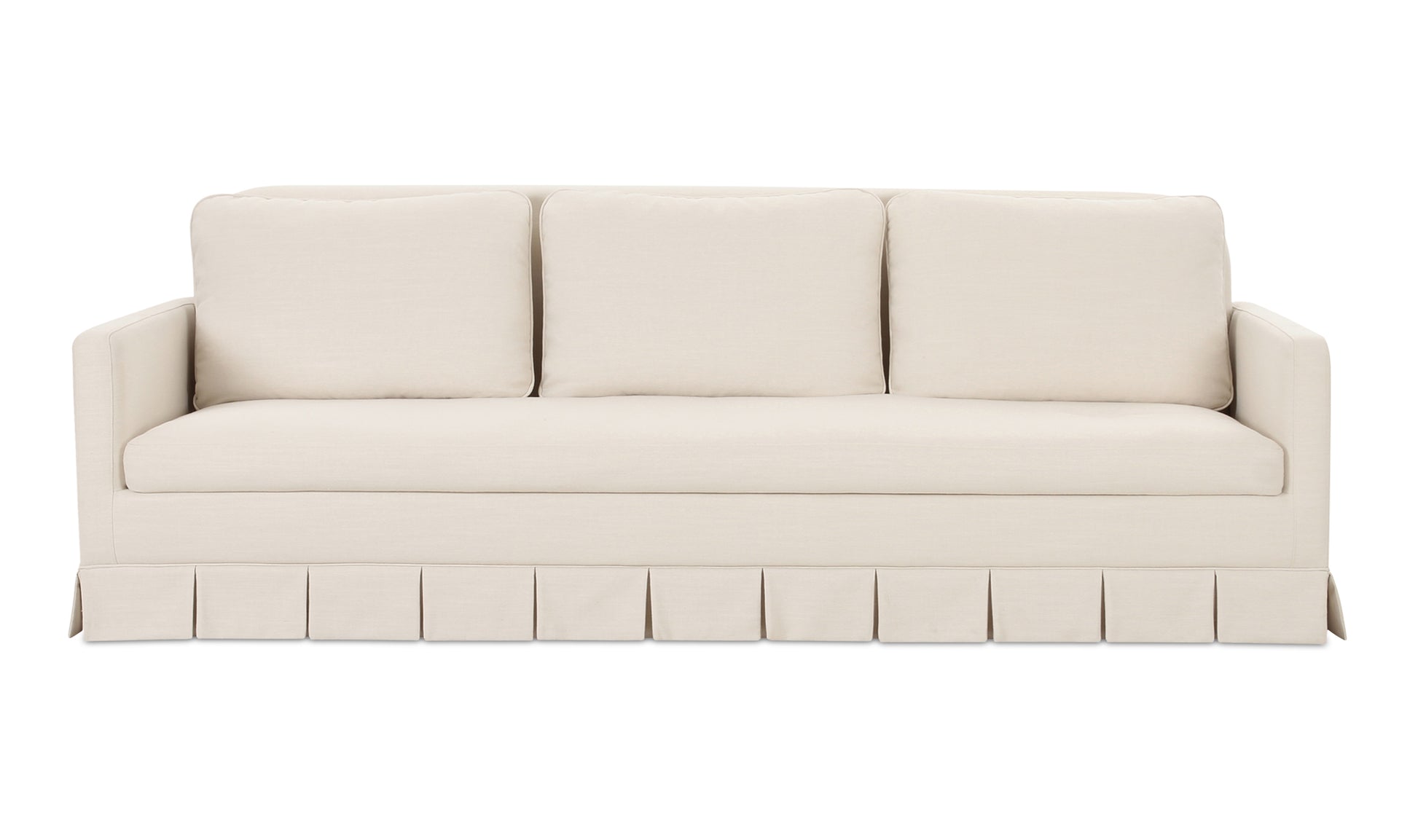 Designed by Gillian Segal for Moe’s Home, the Pellicano Sofa presents a romantically skirted silhouette, artfully pleated and inspired by the enchanting elegance of Italy. Each curve and soft fold echoes the refined charm of its namesake, Hotel Il Pellicano, evoking a sense of poetic nostalgia and effortless luxury.