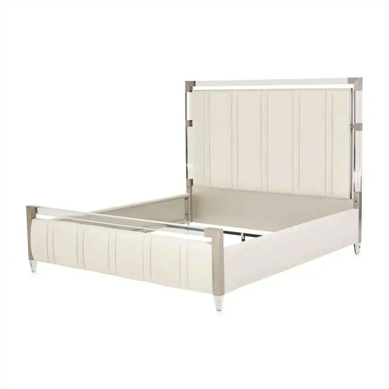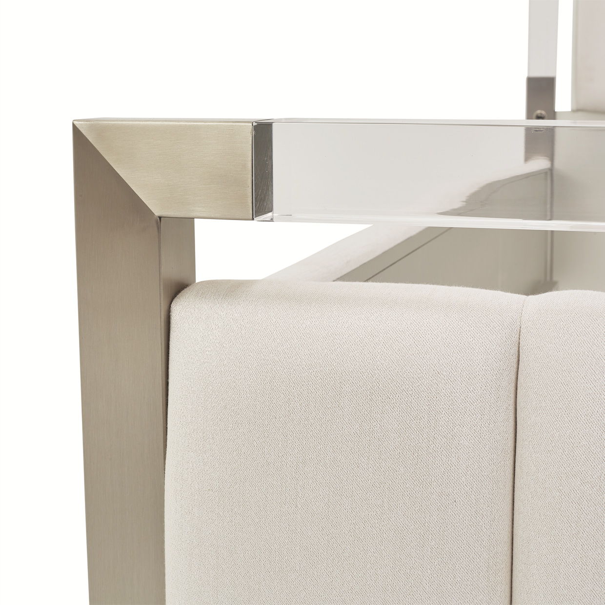 Sink into comfortable elegance with The Penthouse Collection Bed! Metallic threads weave into a frosted linen headboard with channel tufting, while stainless steel and acrylic frame this stunning contemporary bed. Get ready for brighter days!
