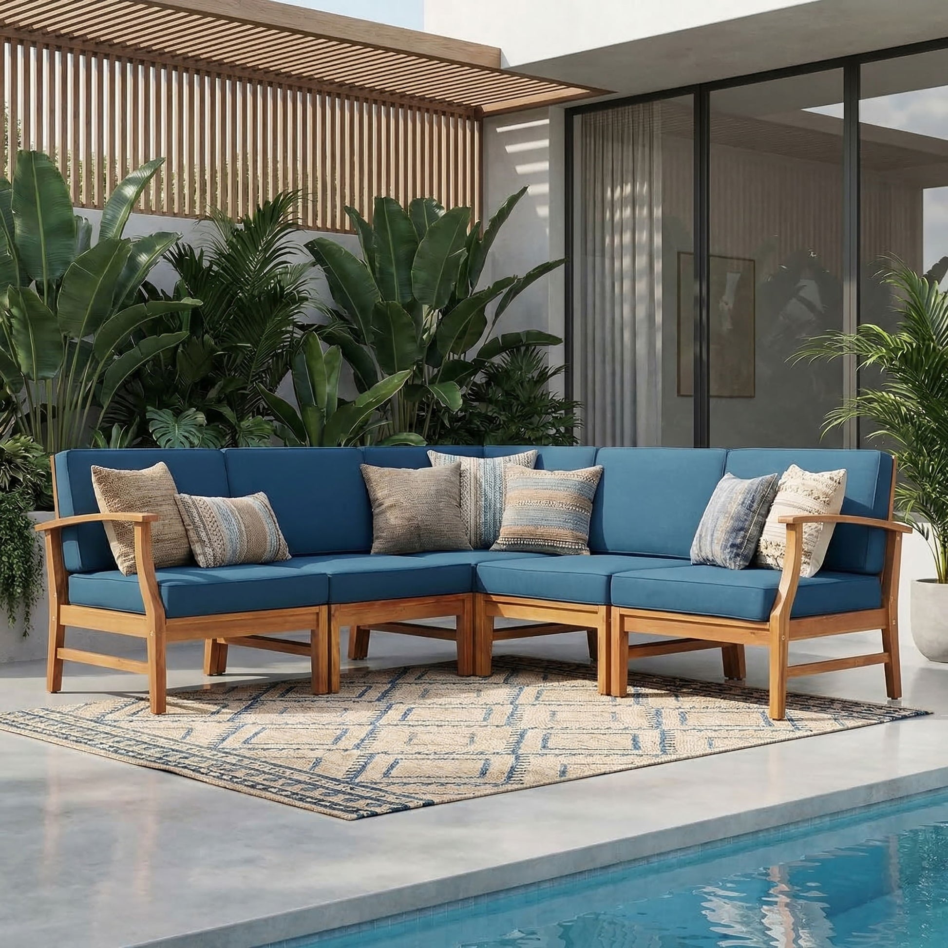 - Durable Acacia Wood: Constructed with a sturdy acacia wood frame, this sofa set provides a modern and natural feel to your patio or backyard, ensuring longevity with its weather-resistant finish.
