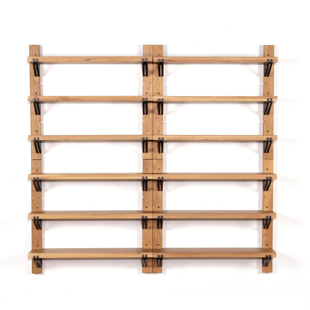 The Four Hands Pivott Shelf offers a refined balance of warmth and contrast, pairing the natural character of oak veneer shelving with crisp black iron hardware. Its tall, streamlined profile creates a strong vertical presence, making it an elegant storage solution for living spaces, offices, or open-concept interiors.