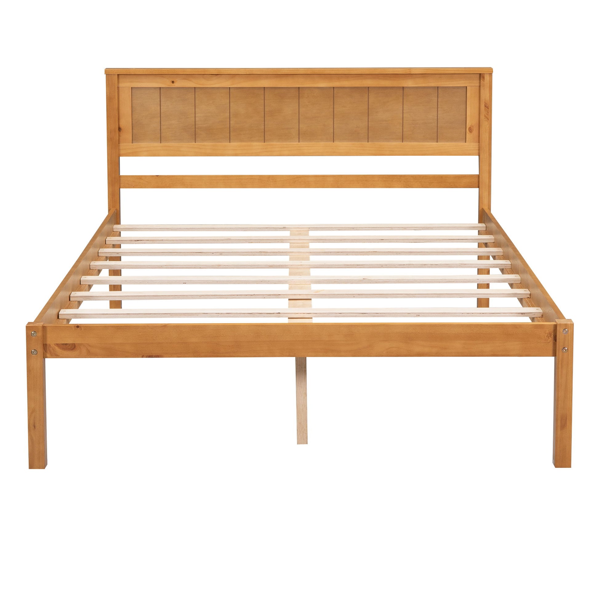 Platform Bed Frame With Headboard, Slat Support, No Box Spring Needed, Queen - Oak
