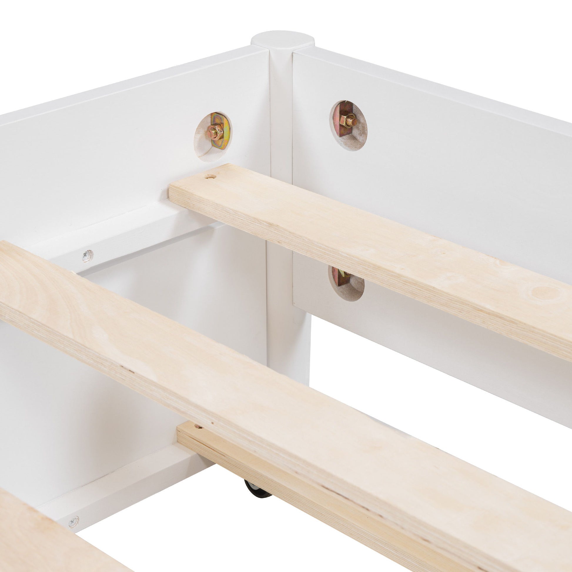 Queen Size Platform Bed With 2 Big Drawers Twin Size Trundle - White