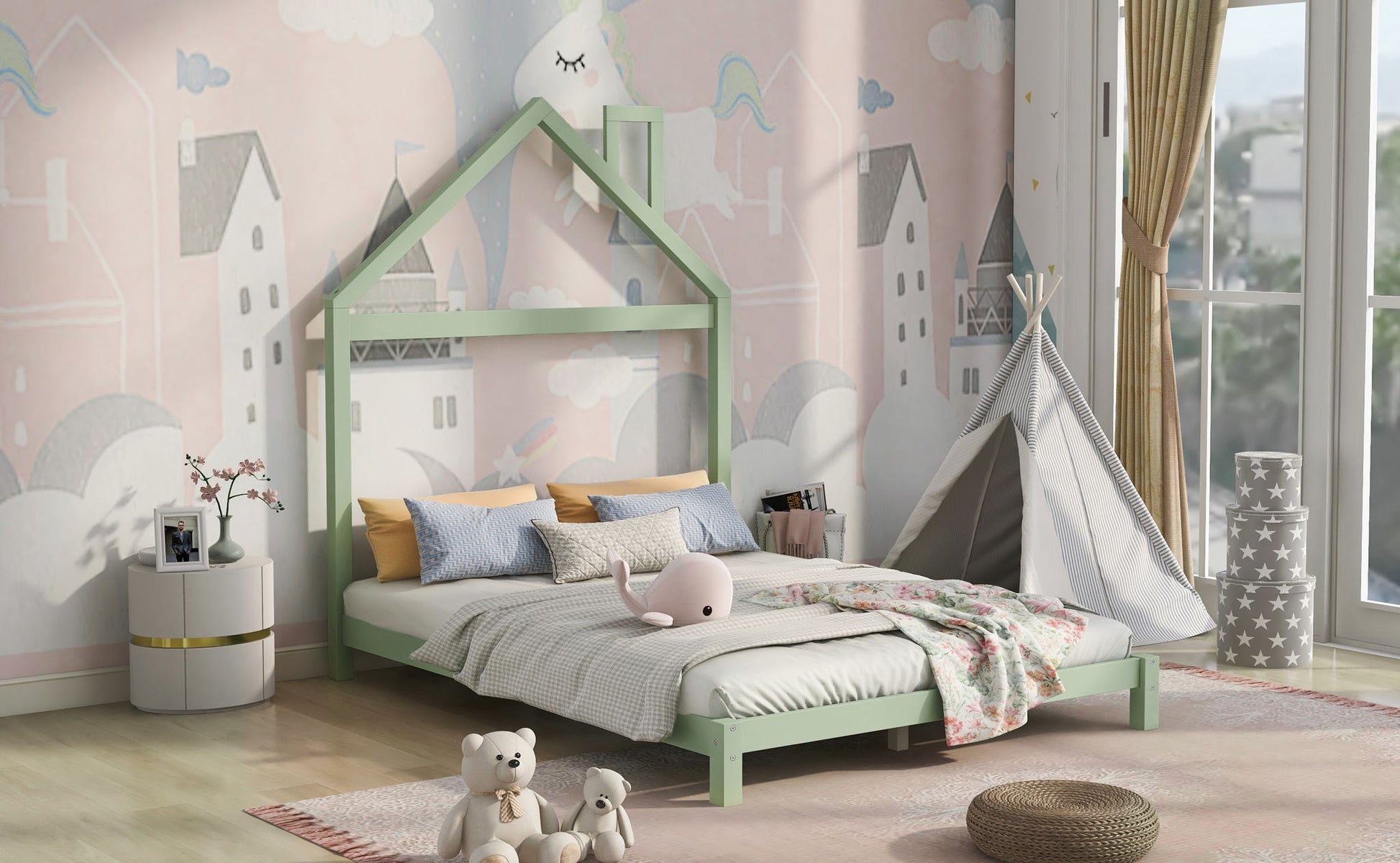 Funny Design: The headboard of this platform bed is shaped like a house, complete with a chimney. It seamlessly blends with all styles of home decor, enhancing the look of any bedroom.