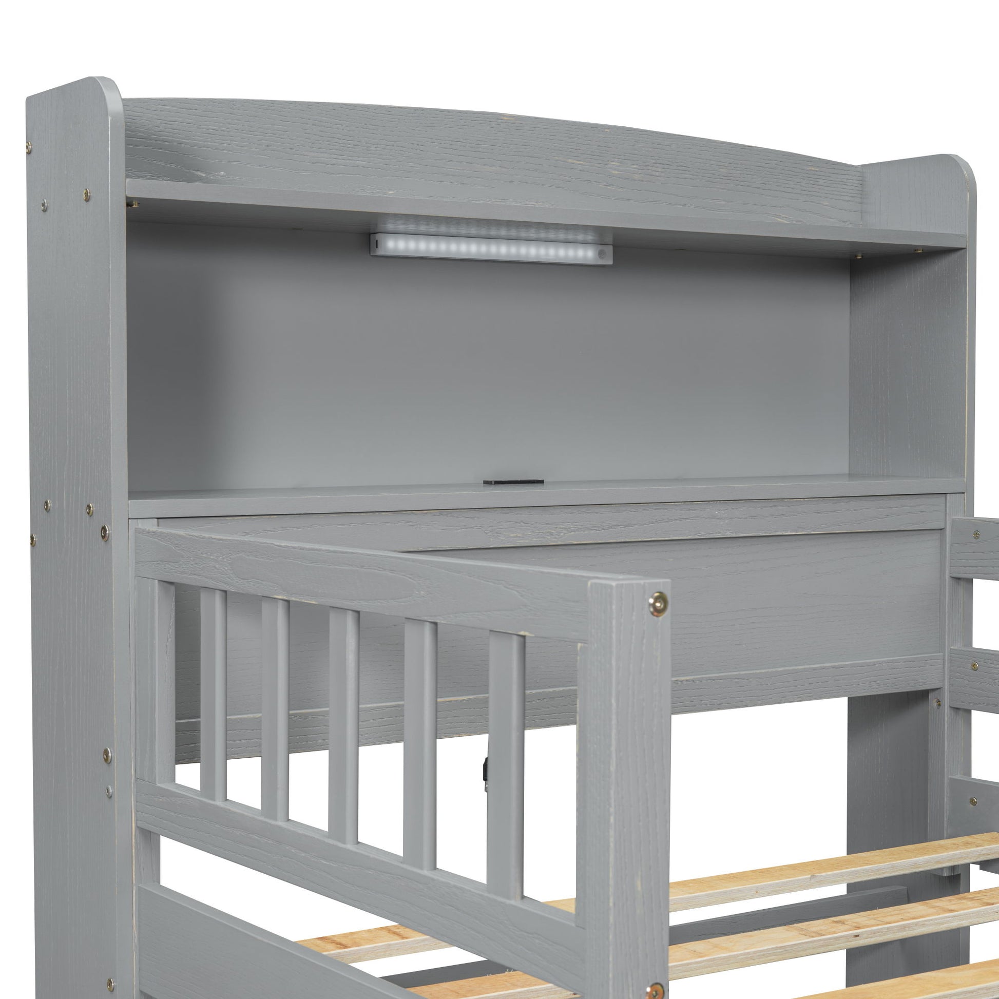 Twin Size Platform Bed With LED Light, Multi Functional Headboard, Guardrail And 2 Drawers - Gray