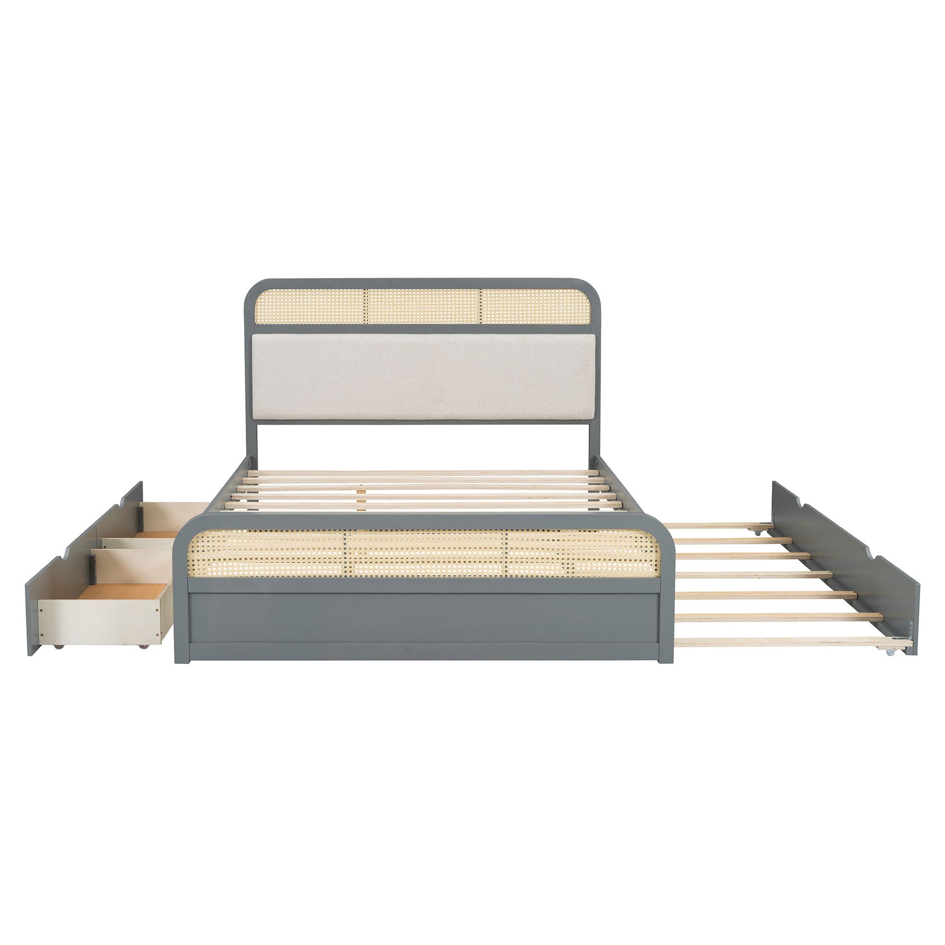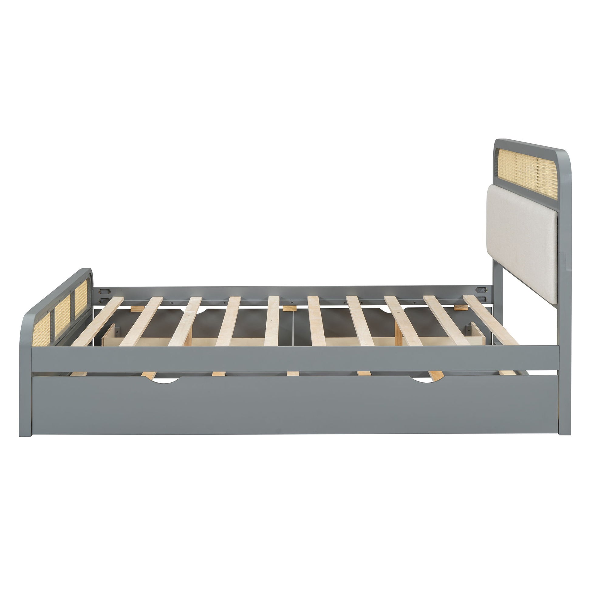 Queen Size Platform Bed With Trundle And 2 Drawers - Gray