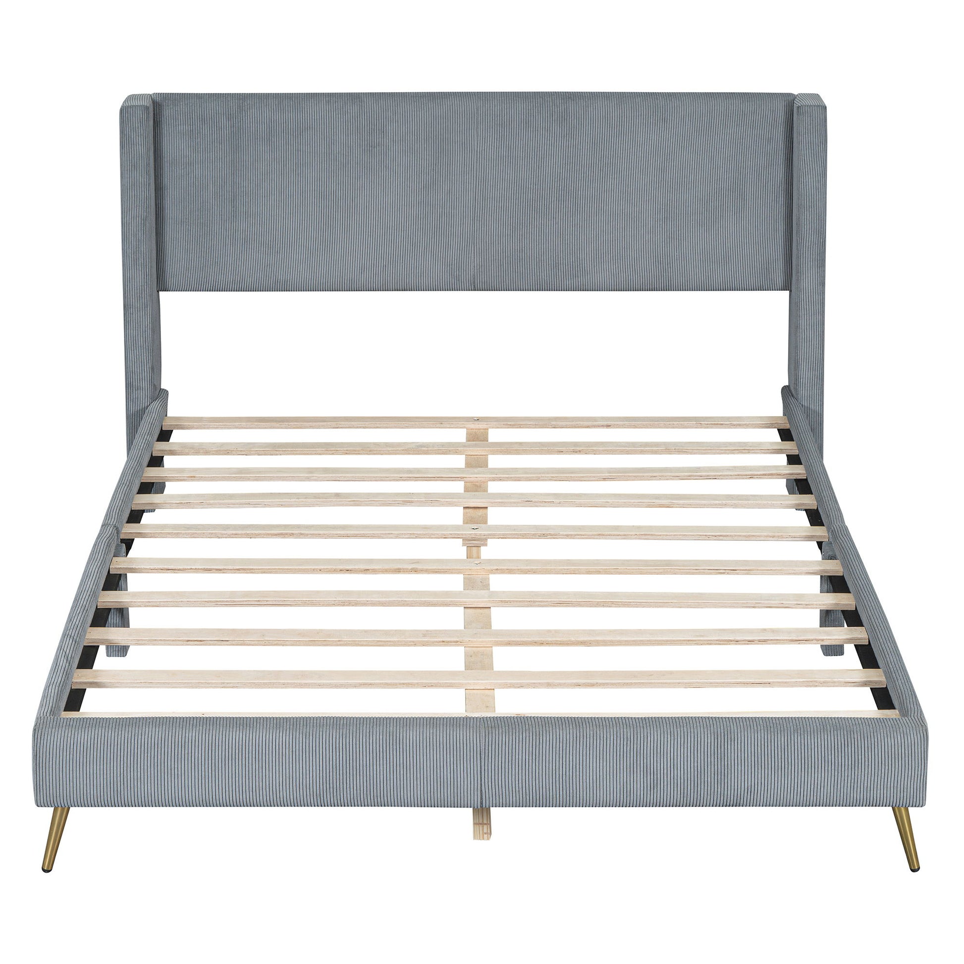 Queen Size Platform Contemporary Bed With Legs - Gray