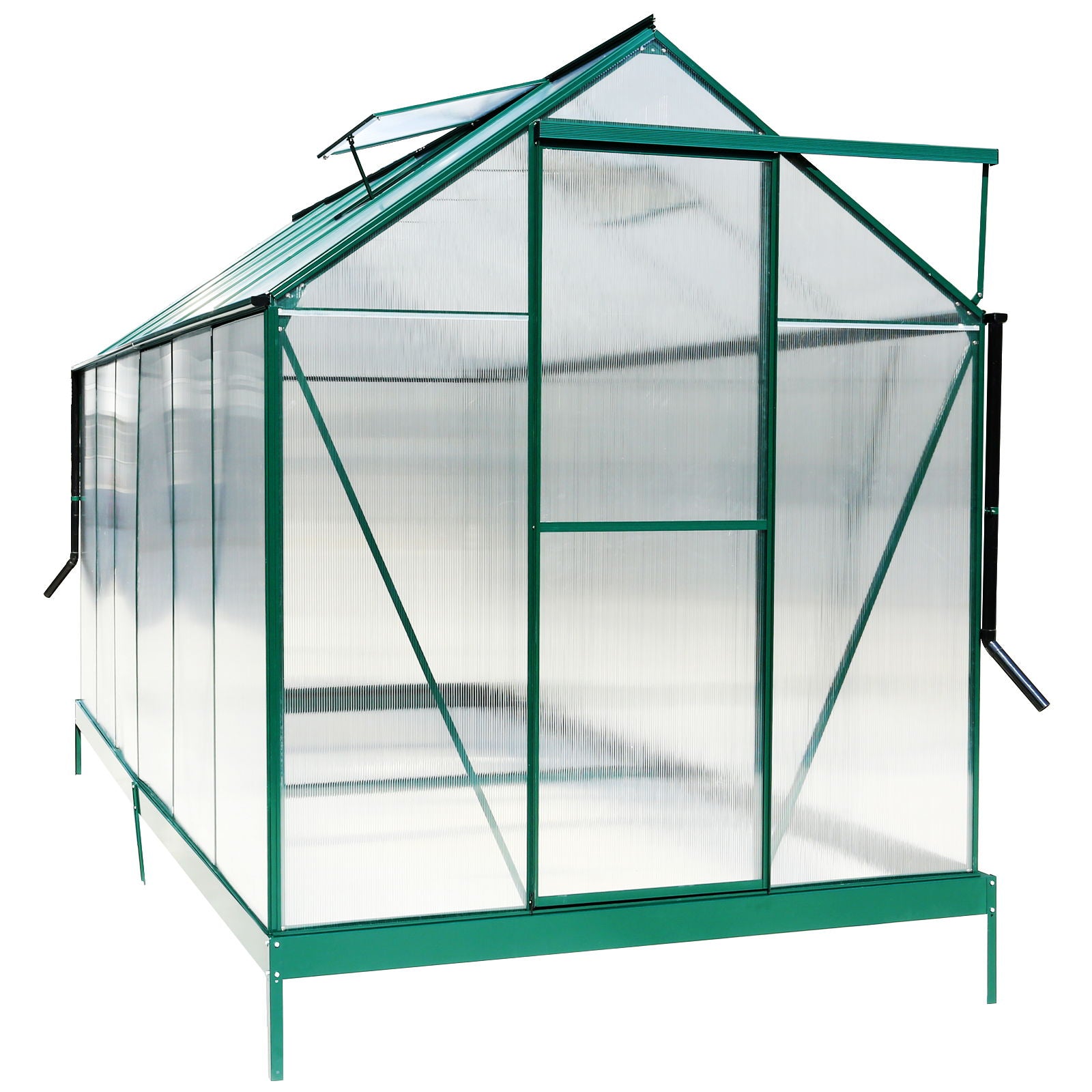 6.3'x12.2'x7' Polycarbonate Greenhouse, Heavy Duty Outdoor Aluminum Walk-In Green House Kit With Rain Gutter, Vent And Door For Backyard Garden - Green