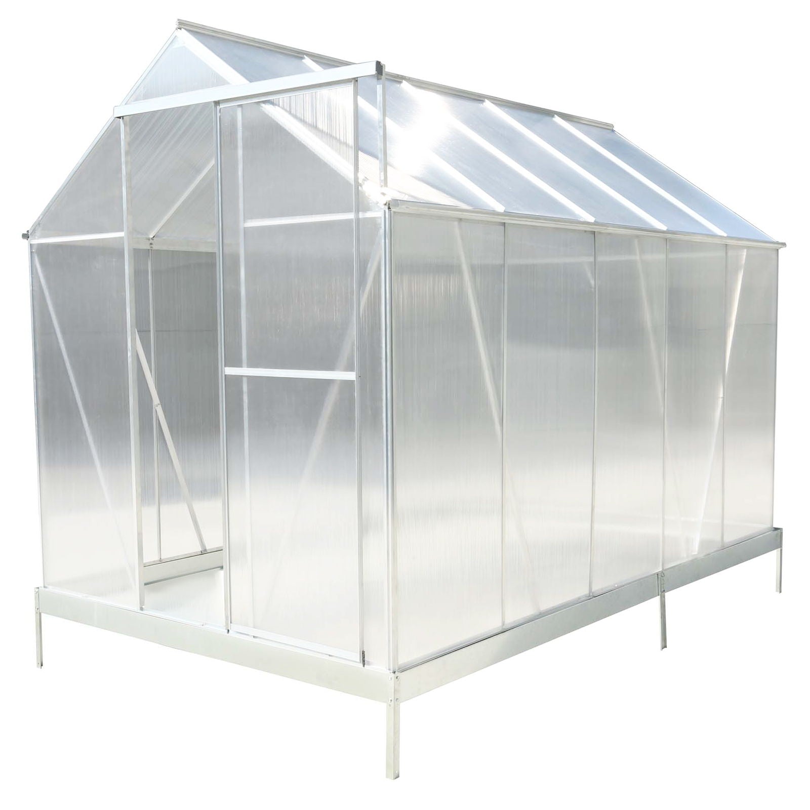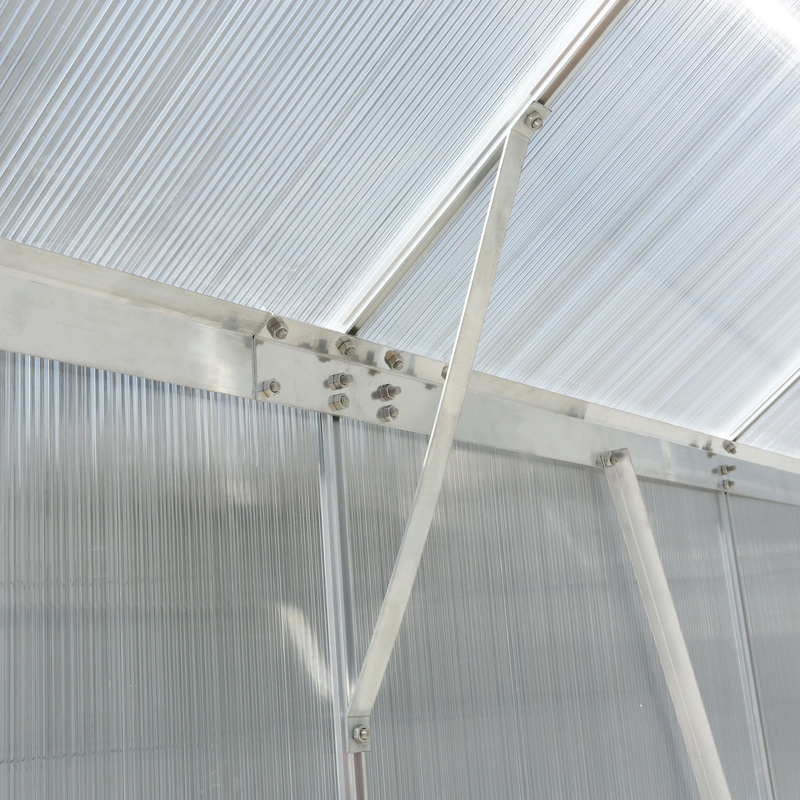 Polycarbonate Greenhouse, Heavy Duty Outdoor Aluminum Walk-In Green House Kit With Rain Gutter, Vent And Door For Backyard Garden - Aluminium